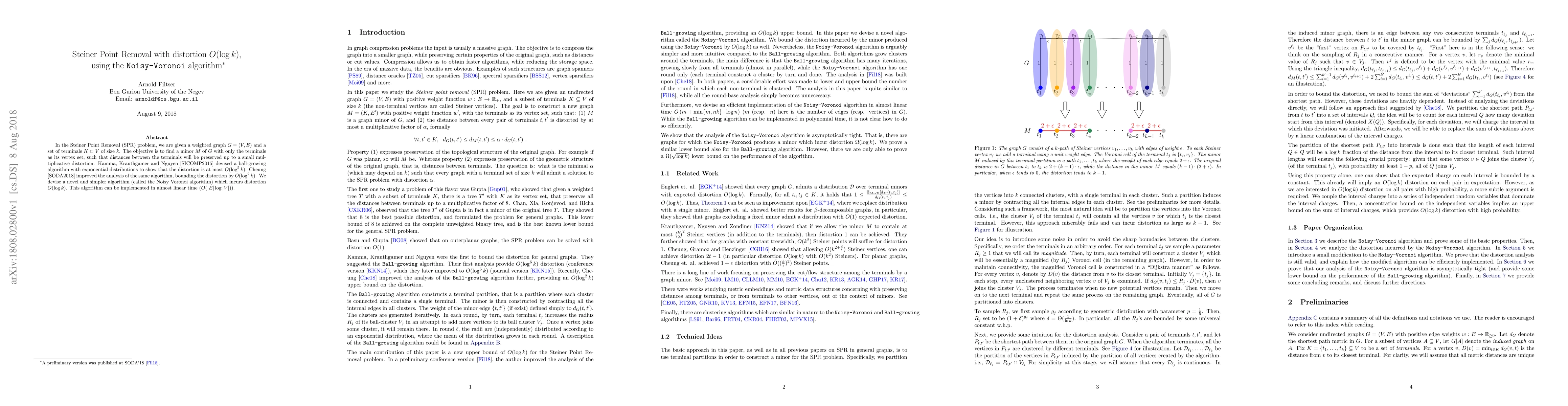 Researchers have developed a new algorithm called Noisy Voronoi that achieves distortion O(log k) in Steiner Point Removal problems, improving upon previous bounds of O(log^2 k) and O(log^5 k). The algorithm runs almost linear time.