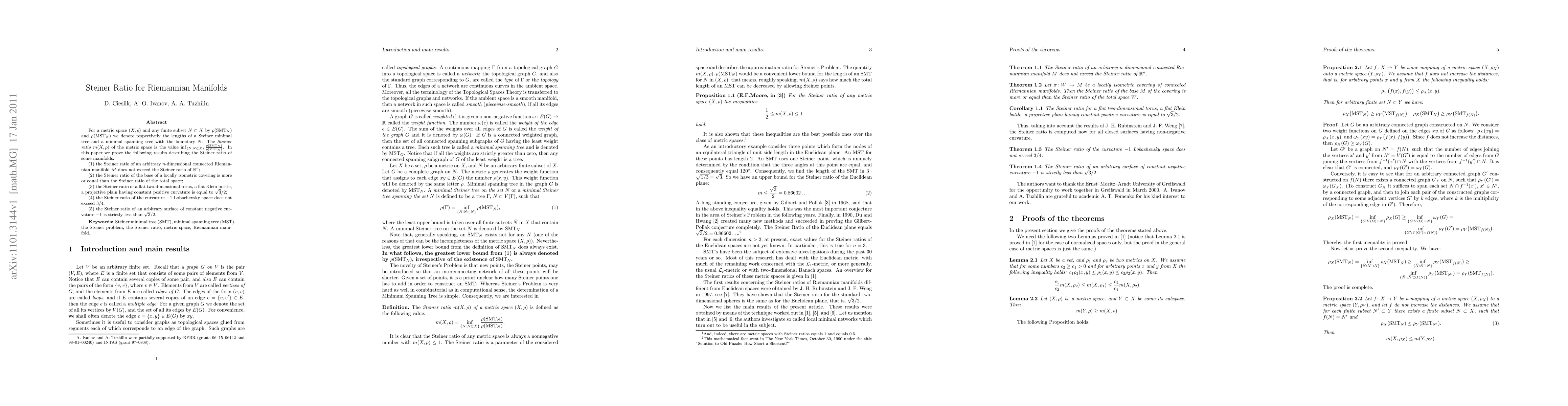 This paper provides estimates for the Steiner ratio on Riemannian manifolds, which measures the deviation of minimal spanning tree length from minimal Steiner tree length, and computes the Steiner ratio for specific geometric surfaces like flat tori, Klein bottles, and projective planes of constant positive curvature.