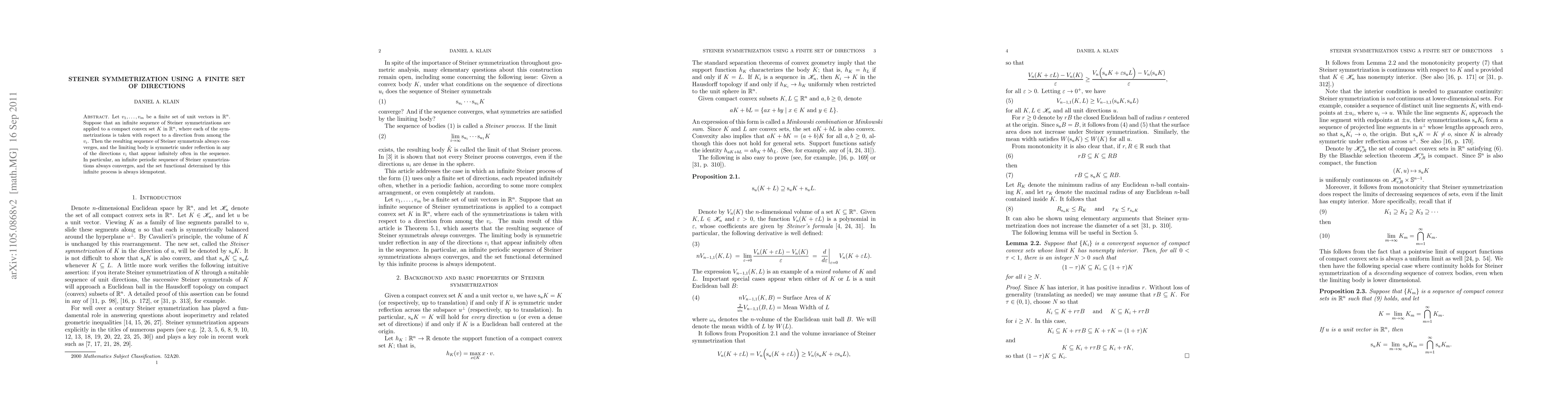 Let $v_1, ..., v_m$ be a finite set of unit vectors in $\RR^n$. Suppose that an infinite sequence of Steiner symmetrizations are applied to a compact convex set $K$ in $\RR^n$, where each of the symmetrizations is taken with respect to a direction from among the $v_i$. Then the resulting sequence of Steiner symmetrals always converges, and the limiting body is symmetric under reflection in any of the directions $v_i$ that appear infinitely often in the sequence. In particular, an infinite periodic sequence of Steiner symmetrizations always converges, and the set functional determined by this infinite process is always idempotent.