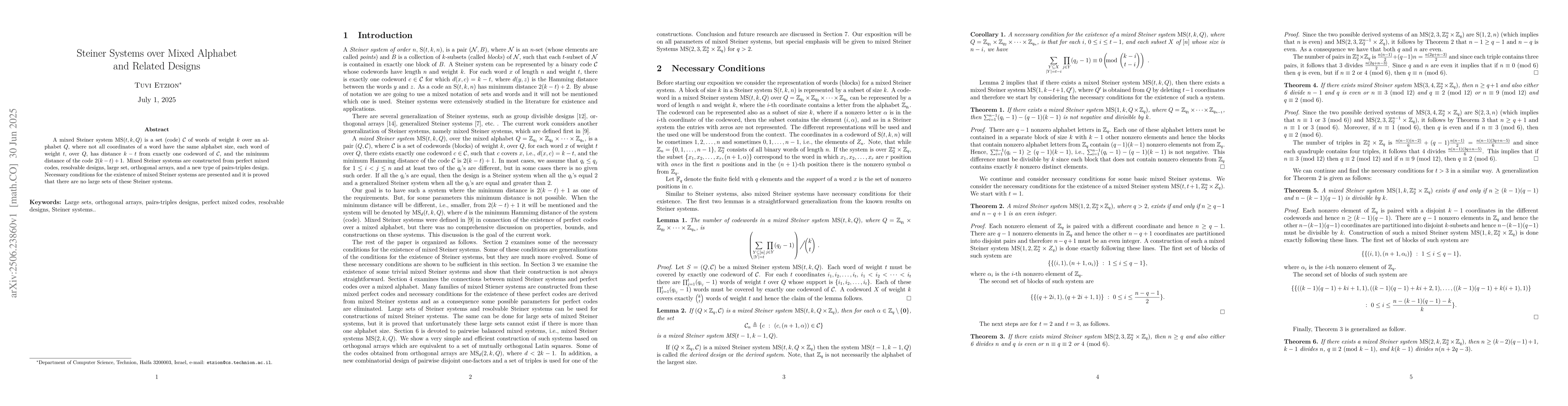 The paper presents a comprehensive study on mixed Steiner systems, discussing their properties, bounds, constructions, and non-existence results.