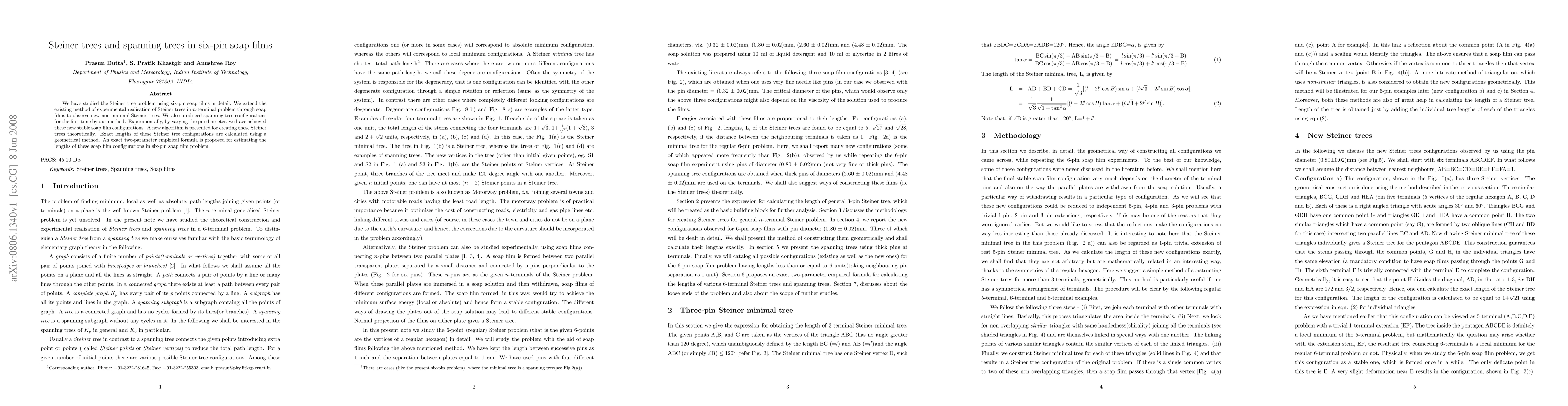 The paper presents a novel experimental method for visualizing Steiner trees and spanning trees in soap films, along with an empirical formula for estimating their lengths.