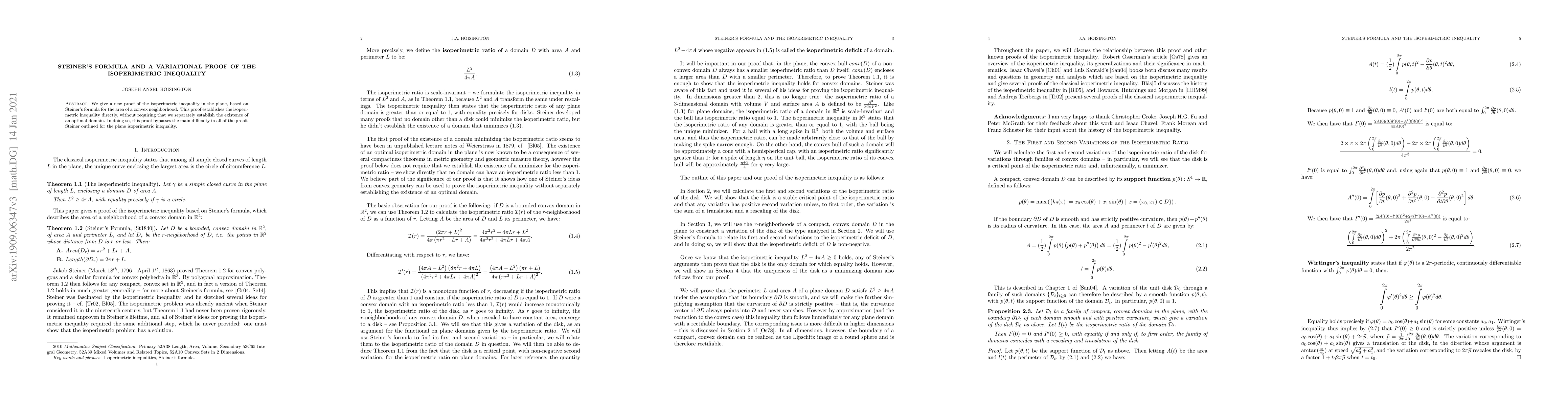 This paper presents a novel variational proof of the plane isoperimetric inequality using Steiner's formula, directly establishing the inequality without the need for identifying an optimal domain, thus overcoming a key challenge in existing proofs.