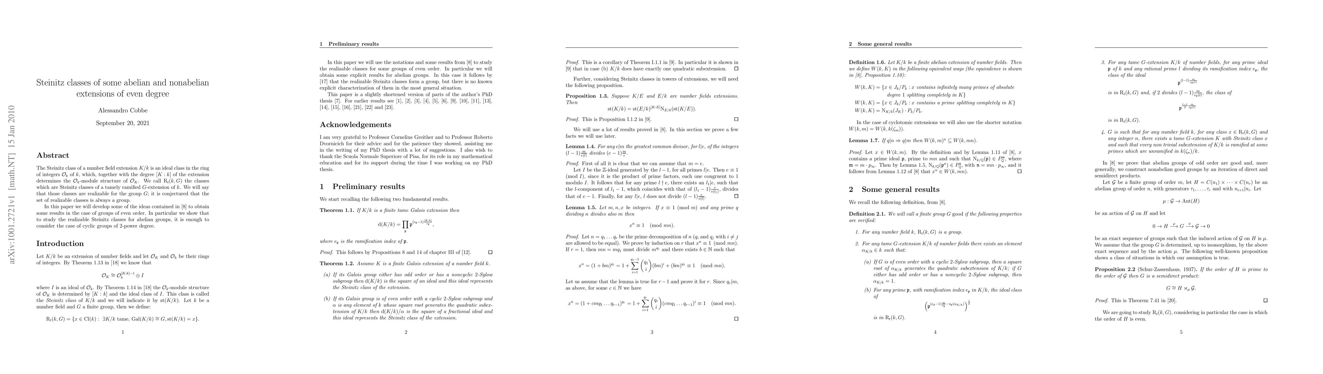 The Steinitz class of a number field extension K/k is an ideal class in the ring of integers O_k of k, which, together with the degree [K:k] of the extension determines the O_k-module structure of O_K. We call R_t(k,G) the classes which are Steinitz classes of a tamely ramified G-extension of k. We will say that those classes are realizable for the group G; it is conjectured that the set of realizable classes is always a group. In this paper we will develop some of the ideas contained in arXiv:0910.5080 to obtain some results in the case of groups of even order. In particular we show that to study the realizable Steinitz classes for abelian groups, it is enough to consider the case of cyclic groups of 2-power degree.