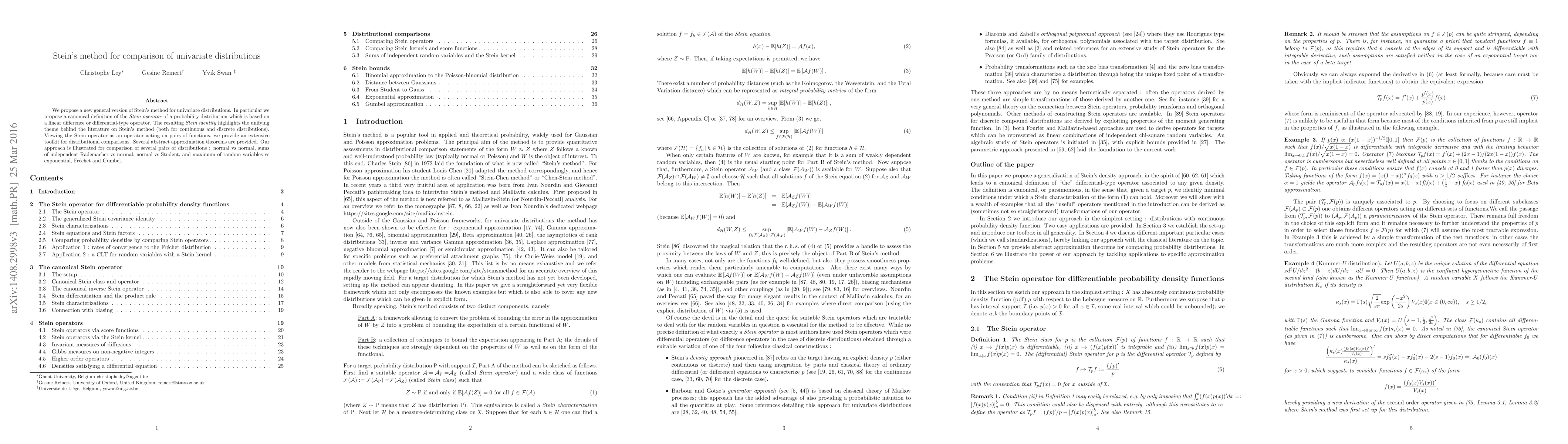 Gesine Reinert, Yvik Swan, Guillaume Mijoule et al.