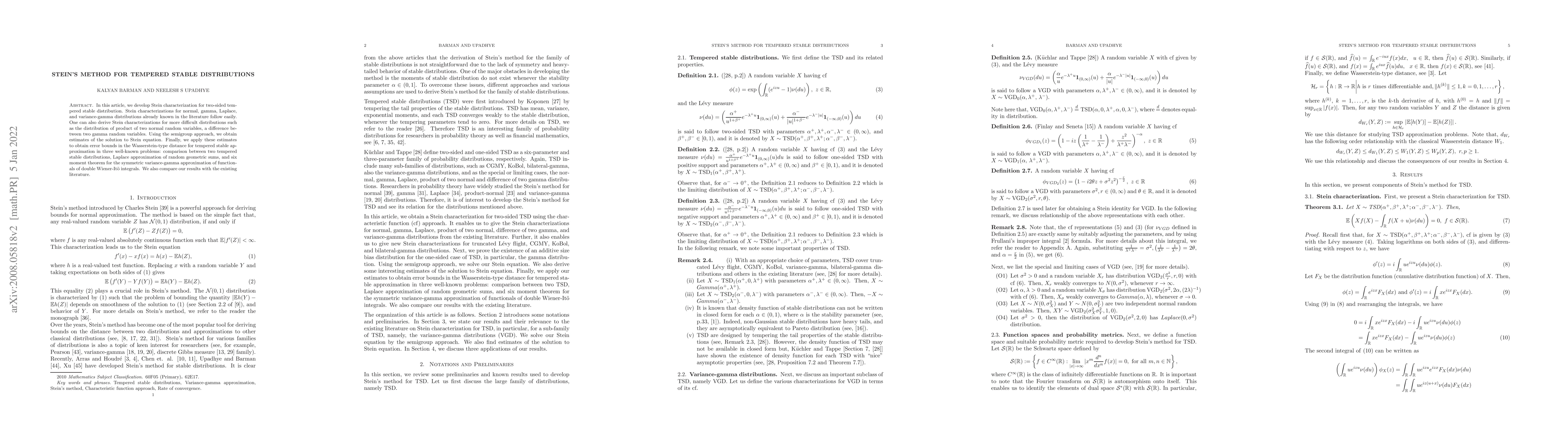 This work is novel because it applies Stein's method to tempered stable distributions, which has not been explored extensively in the literature.