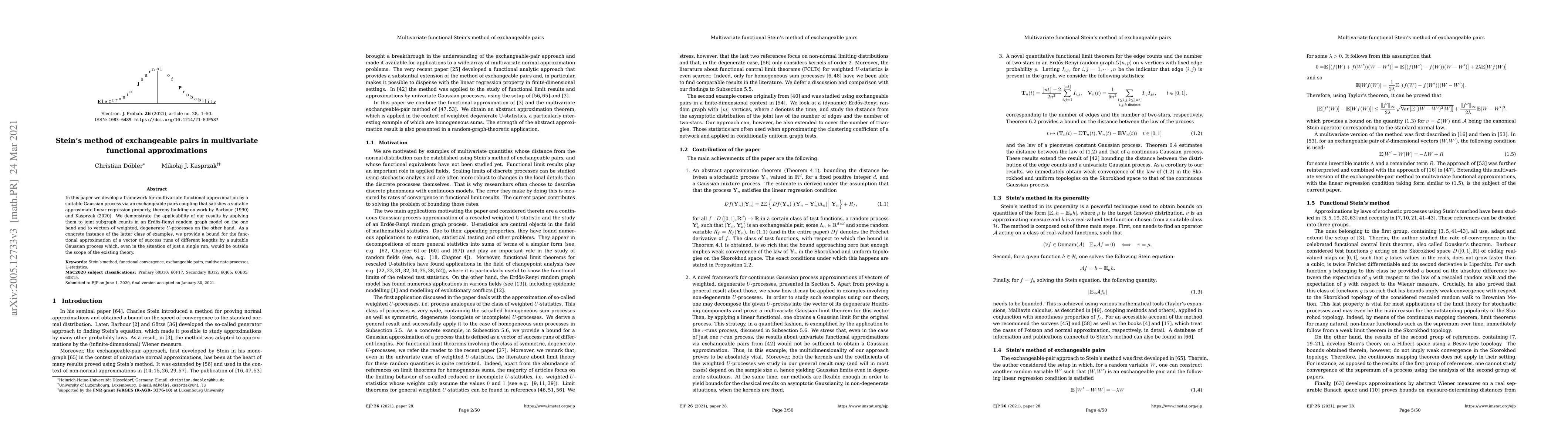 This paper introduces a framework for multivariate functional approximation using a Gaussian process through an exchangeable pairs coupling, extending previous work by Barbour and Kasprzak. The framework is applied to joint subgraph counts in an Erdős-Rényi random graph model and to vectors of weighted, degenerate $U$-processes, providing new bounds for the latter.