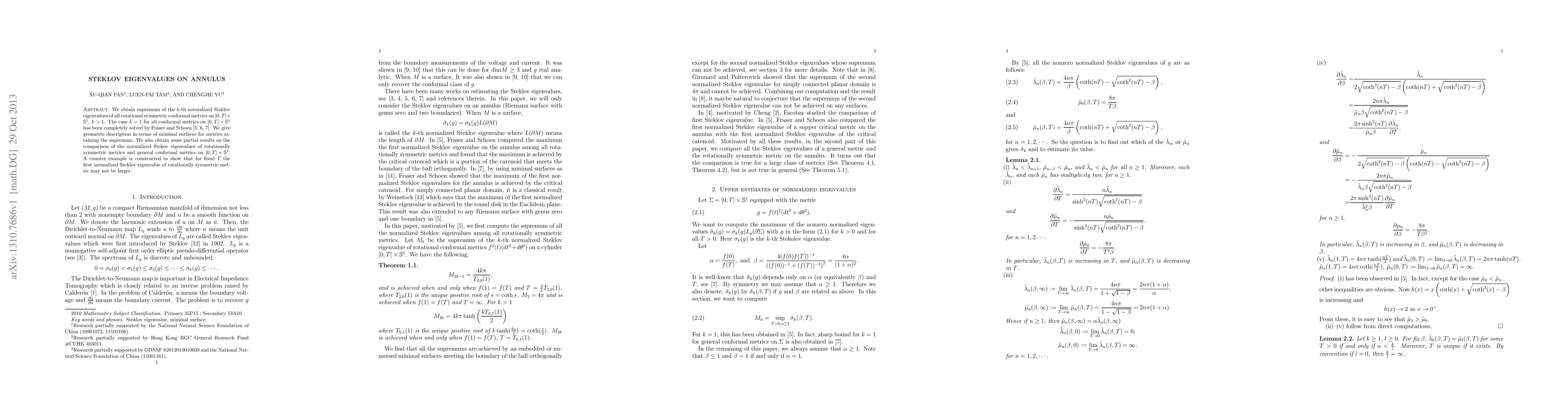We obtain supremum of the k-th normalized Steklov eigenvalues of all rotational symmetric conformal metrics on the cylinder with k>1. The case k=1 for all conformal metrics has been completely solved by Fraser and Schoen. We give geometric description in terms of minimal surfaces for metrics attaining the supremum. We also obtain some partial results on the comparison of the normalized Stekov eigenvalues of rotationally symmetric metrics and general conformal metrics on the cylinder. A counter example is constructed to show that for that the first normalized Steklov eigenvalue of rotationally symmetric metric may not be larger.