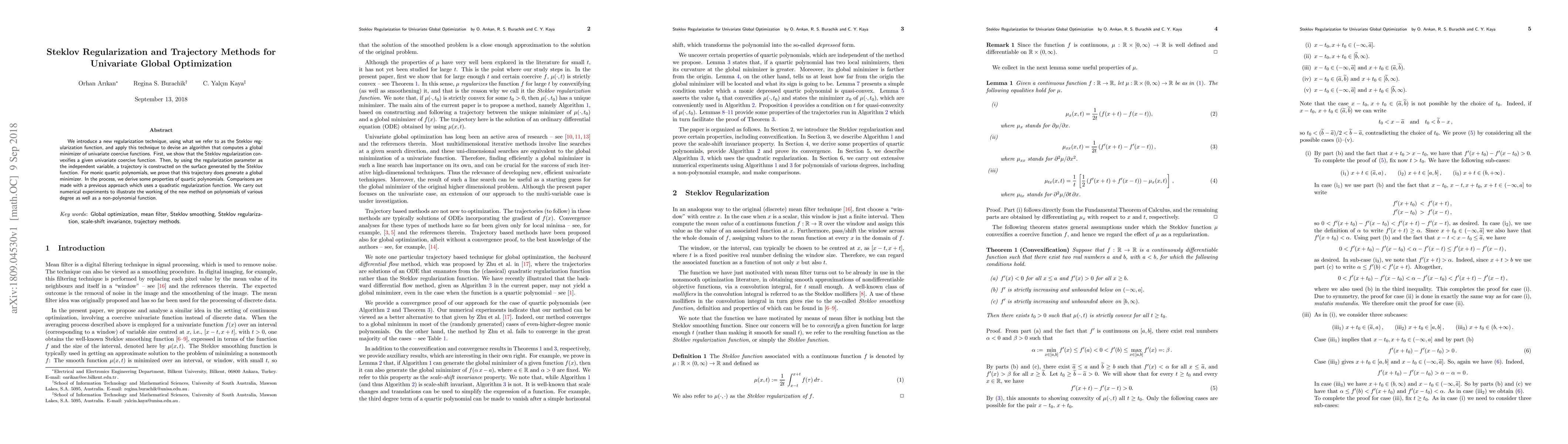 Researchers introduce a new regularization technique called Steklov regularization to find global minimizers of univariate coercive functions, showing it can convexify these functions and lead to the discovery of global minima in polynomial functions.