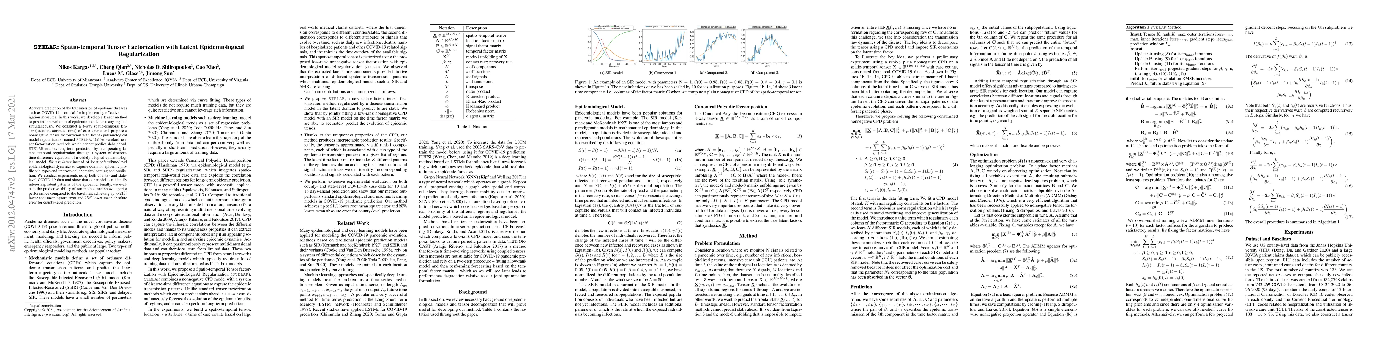 STELAR is a novel tensor factorization method that predicts the evolution of epidemic trends across multiple regions by incorporating latent epidemiological regularization. It outperforms baselines in COVID-19 case prediction, achieving significant reductions in error metrics.