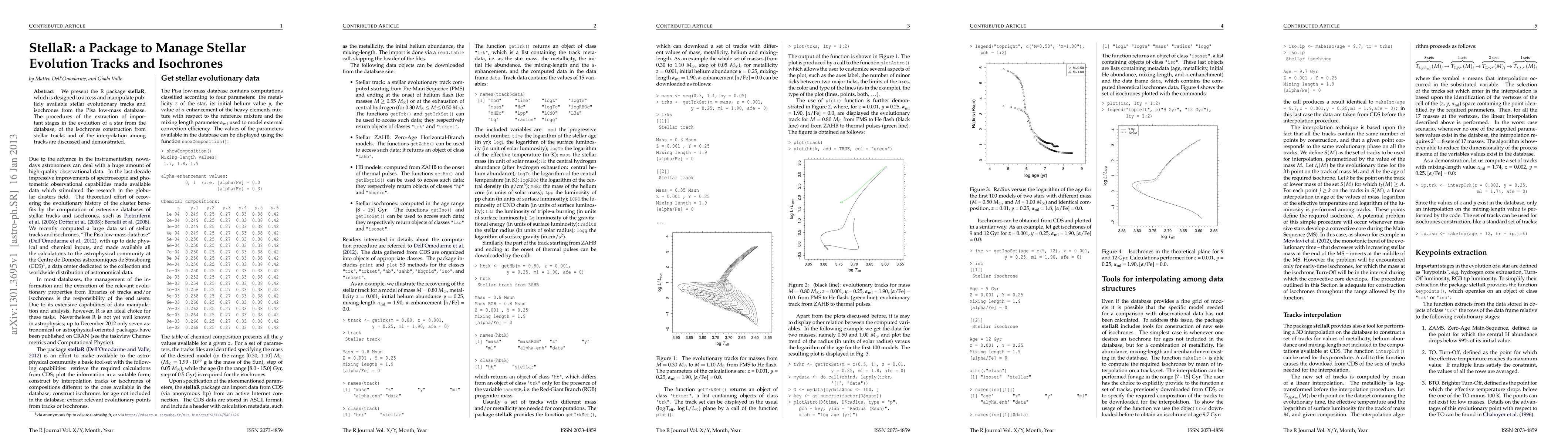 The package stellaR provides a user-friendly interface for accessing and manipulating stellar tracks and isochrones.