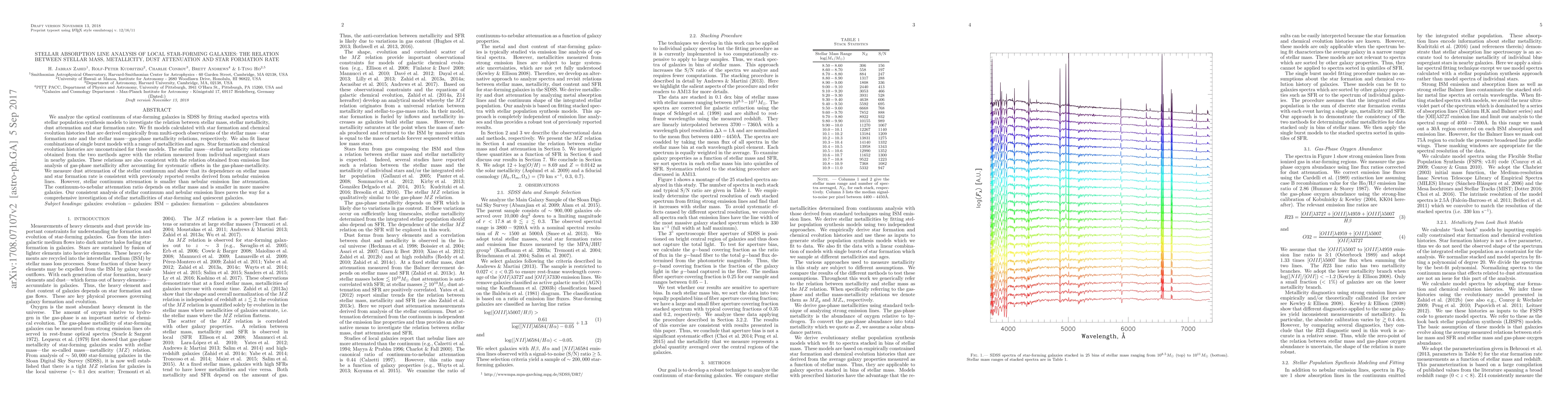 This paper analyzes the optical continuum of star-forming galaxies in SDSS to explore the relationships between stellar mass, metallicity, dust attenuation, and star formation rate. It finds that stellar continuum attenuation is smaller than nebular emission line attenuation, with the continuum-to-nebular attenuation ratio varying with stellar mass.