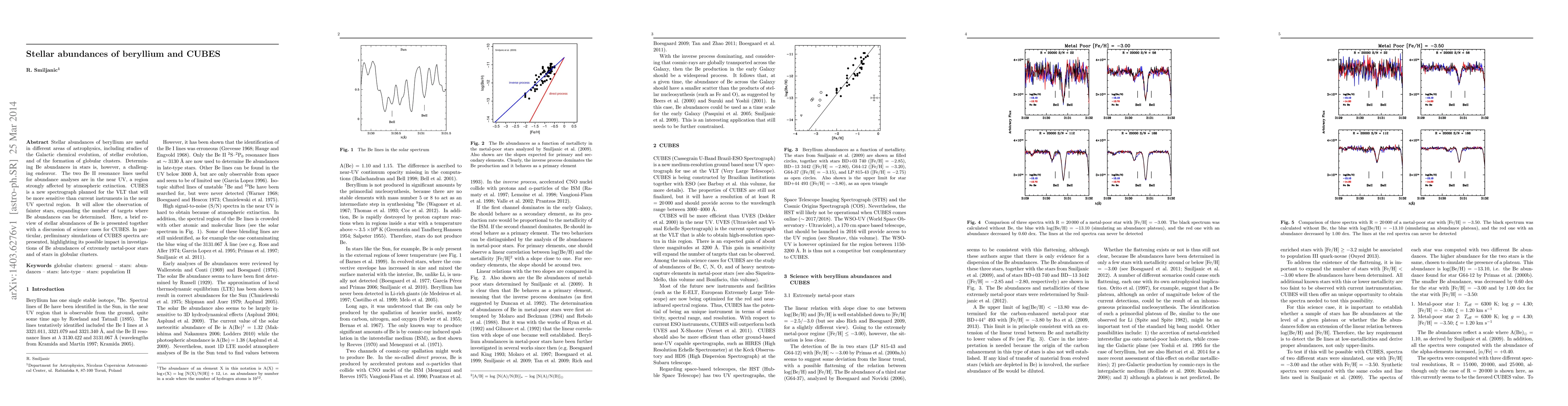 This paper reviews the significance of beryllium abundances in astrophysics and introduces CUBES, a new near-UV spectrograph for the VLT. It highlights CUBES' potential to observe fainter stars, thereby expanding the study of beryllium in extremely metal-poor stars and globular clusters.