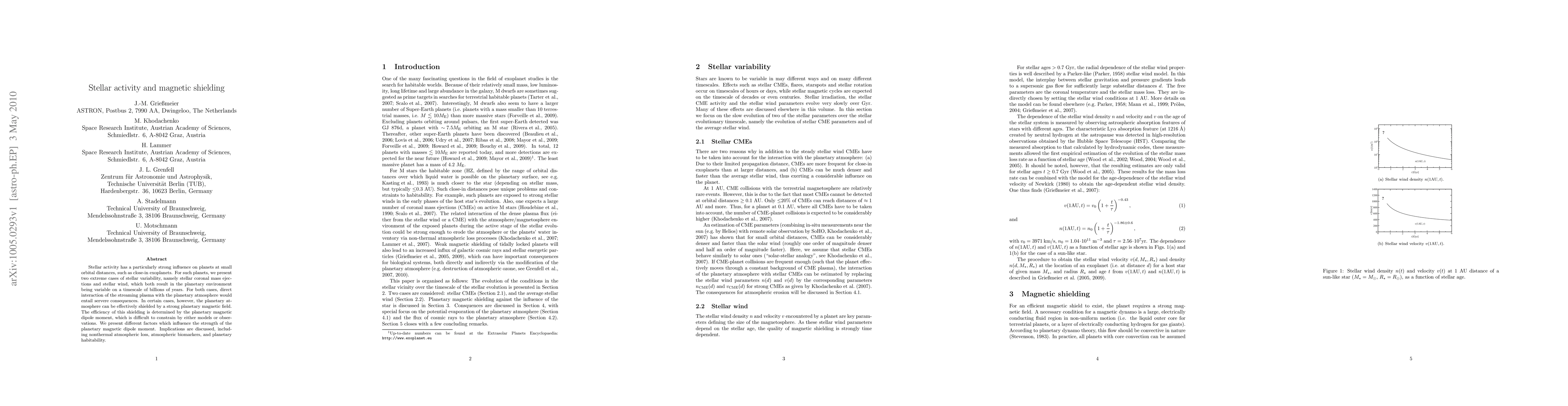 This paper examines how stellar activity, particularly coronal mass ejections and stellar wind, impacts close-in exoplanets, highlighting the role of planetary magnetic fields in shielding these planets from severe atmospheric consequences. The study discusses factors influencing the strength of the planetary magnetic dipole moment and its implications for atmospheric loss, biomarkers, and habitability.