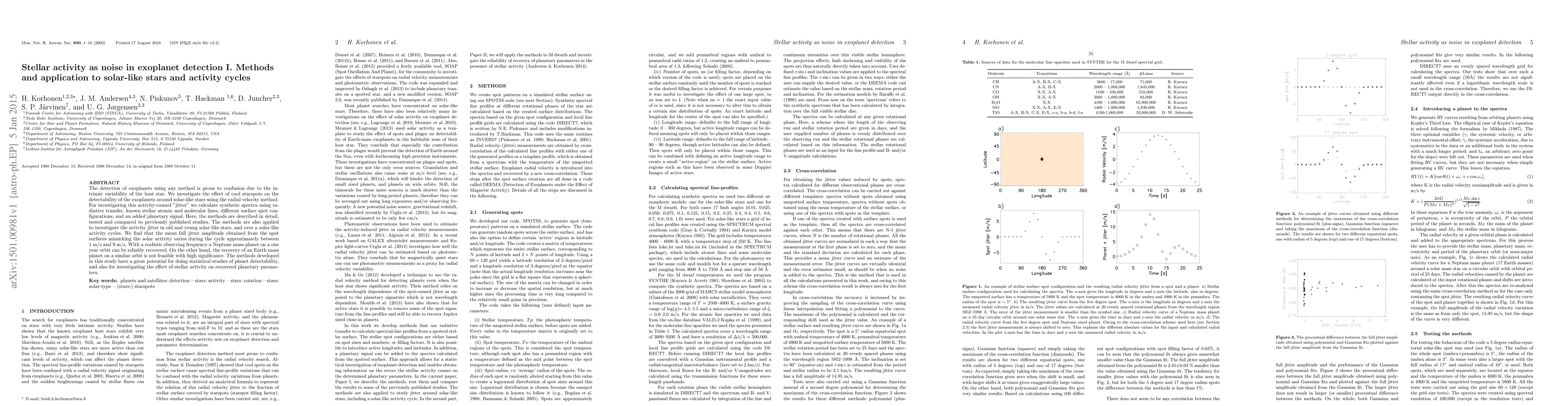 This paper investigates the impact of stellar activity, specifically cool starspots, on the radial velocity method for exoplanet detection. It develops and tests methods to simulate stellar "jitter" and applies these to solar-like stars, finding that while Neptune-mass planets can be reliably detected, Earth-mass planets are not feasible with current observing frequencies.