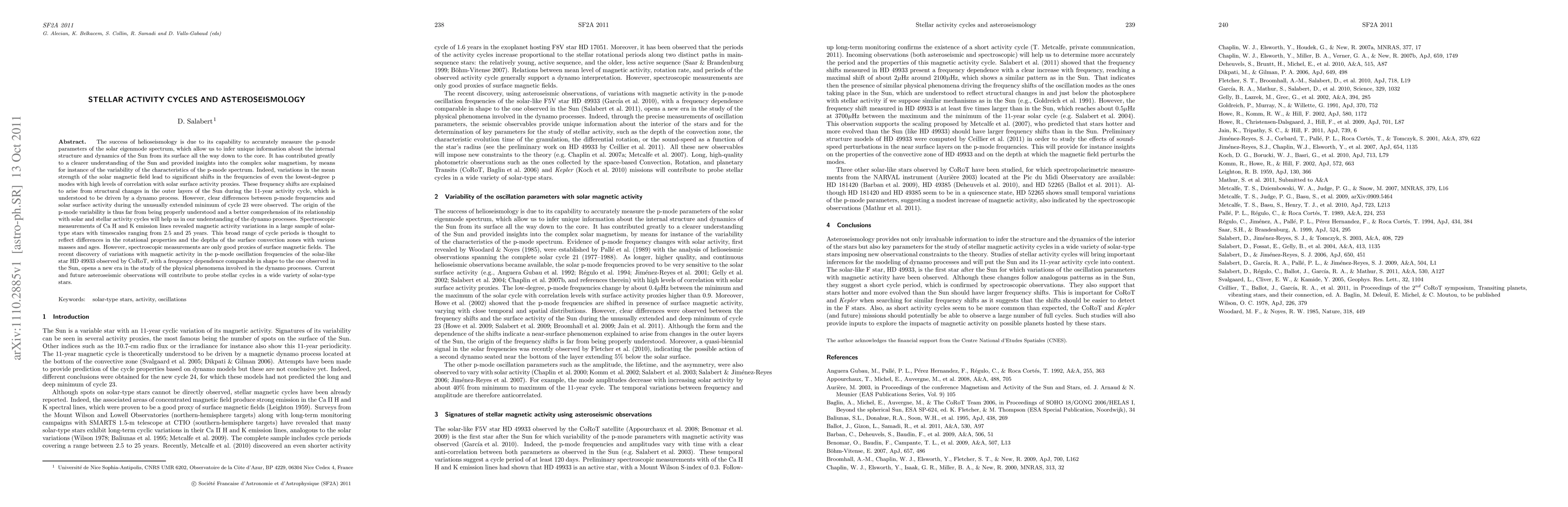 This paper explores the relationship between stellar activity cycles and asteroseismology, highlighting how p-mode frequency shifts in the Sun correlate with solar magnetic field variations and surface activity. It discusses the potential of asteroseismic observations to better understand dynamo processes across solar-type stars, noting the recent discovery of similar p-mode frequency variations in the star HD 49933.