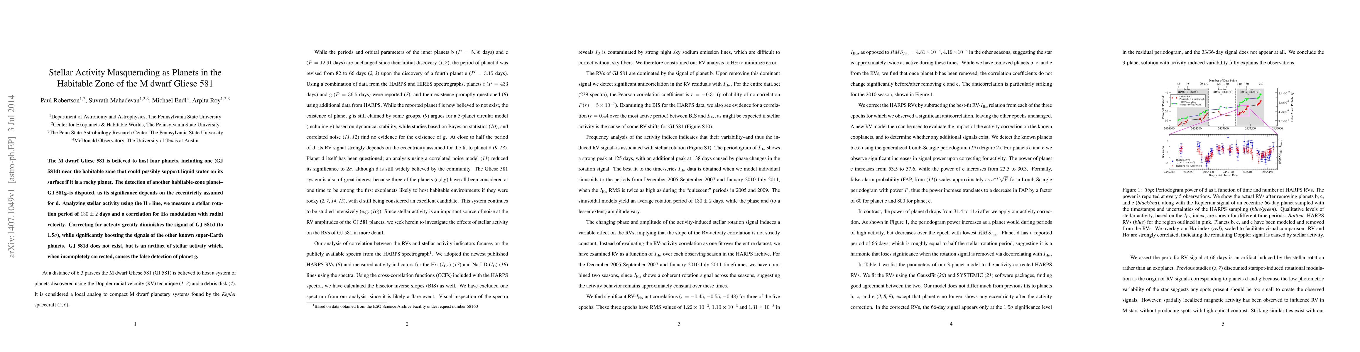 This study finds that stellar activity in Gliese 581, particularly in the H-alpha line, leads to the false detection of planets d and g near the star's habitable zone. Correcting for this activity reveals that planet d does not exist, while the signal for planet g is also likely an artifact.