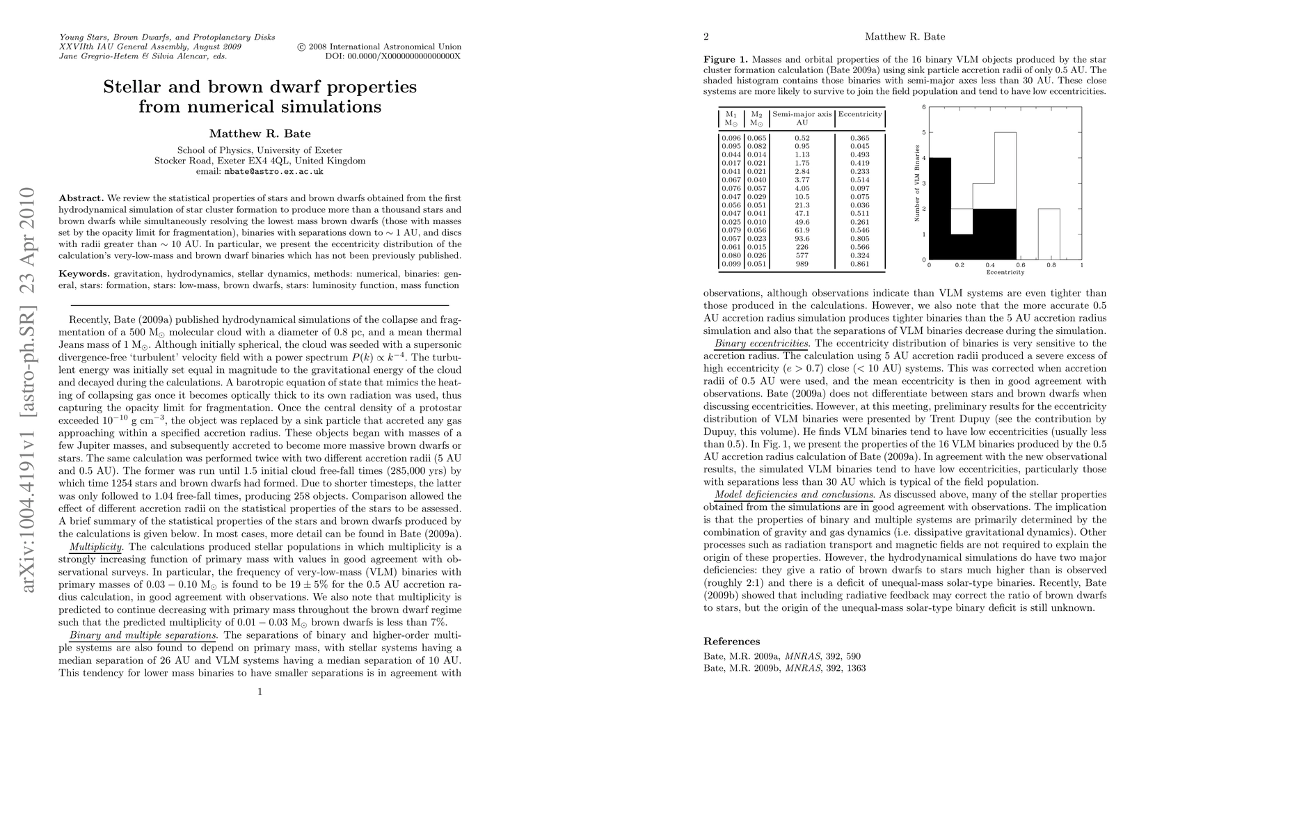 We review the statistical properties of stars and brown dwarfs obtained from the first hydrodynamical simulation of star cluster formation to produce more than a thousand stars and brown dwarfs while simultaneously resolving the lowest mass brown dwarfs (those with masses set by the opacity limit for fragmentation), binaries with separations down to 1 AU, and discs with radii greater than 10 AU. In particular, we present the eccentricity distribution of the calculation's very-low-mass and brown dwarf binaries which has not been previously published.