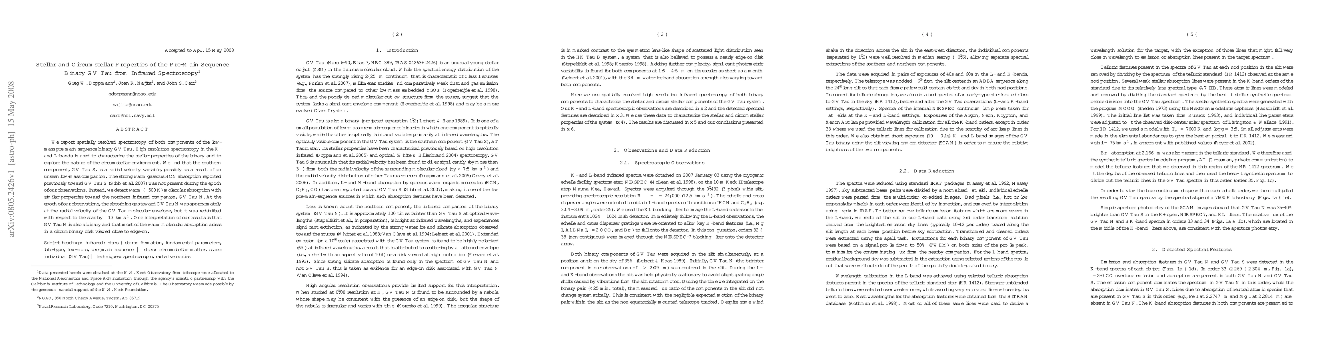 We report spatially resolved spectroscopy of both components of the low-mass pre-main-sequence binary GV Tau. High resolution spectroscopy in the K- and L-bands is used to characterize the stellar properties of the binary and to explore the nature of the circumstellar environment. We find that the southern component, GV Tau S, is a radial velocity variable, possibly as a result of an unseen low-mass companion. The strong warm gaseous HCN absorption reported previously toward GV Tau S (Gibb et al. 2007) was not present during the epoch of our observations. Instead, we detect warm (~500 K) molecular absorption with similar properties toward the northern infrared companion, GV Tau N. At the epoch of our observations, the absorbing gas toward GV Tau N was approximately at the radial velocity of the GV Tau molecular envelope, but it was redshifted with respect to the star by ~13 km/s. One interpretation of our results is that GV Tau N is also a binary and that most of the warm molecular absorption arises in a circumbinary disk viewed close to edge-on.
