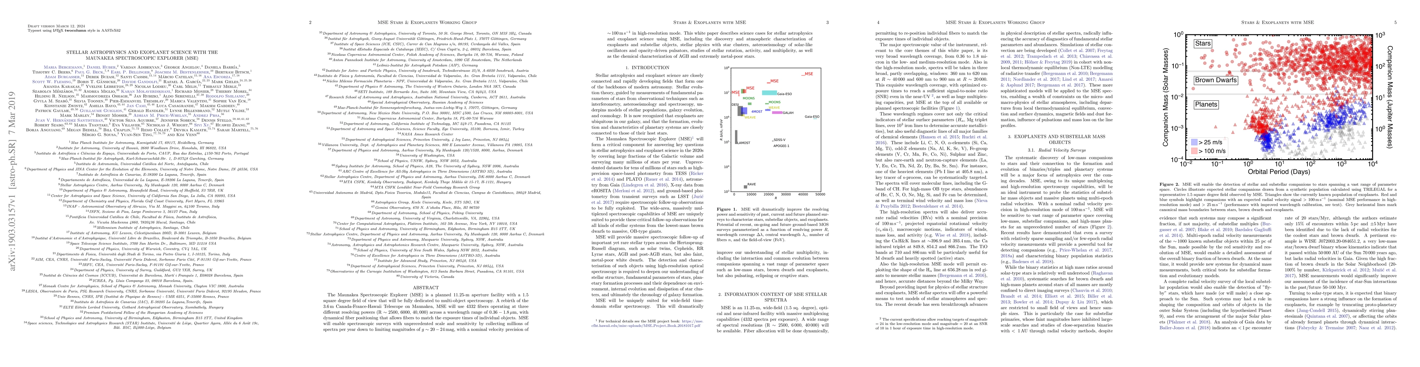 The Maunakea Spectroscopic Explorer (MSE) is a planned 11.25-m telescope dedicated to multi-object spectroscopy, enabling extensive surveys with high sensitivity and precision. It will facilitate groundbreaking research in stellar astrophysics and exoplanet science, including the discovery and characterization of exoplanets and substellar objects.