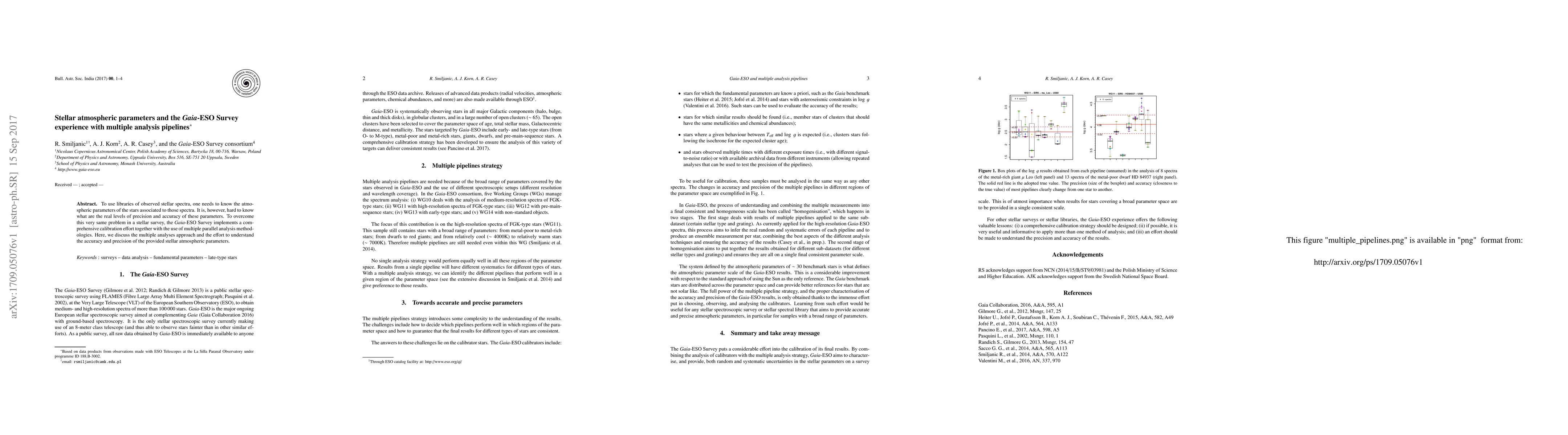 The Gaia-ESO Survey employs multiple analysis pipelines to determine stellar atmospheric parameters, aiming to enhance precision and accuracy. This approach allows for a comprehensive calibration effort to better understand the true levels of precision and accuracy of the derived parameters.