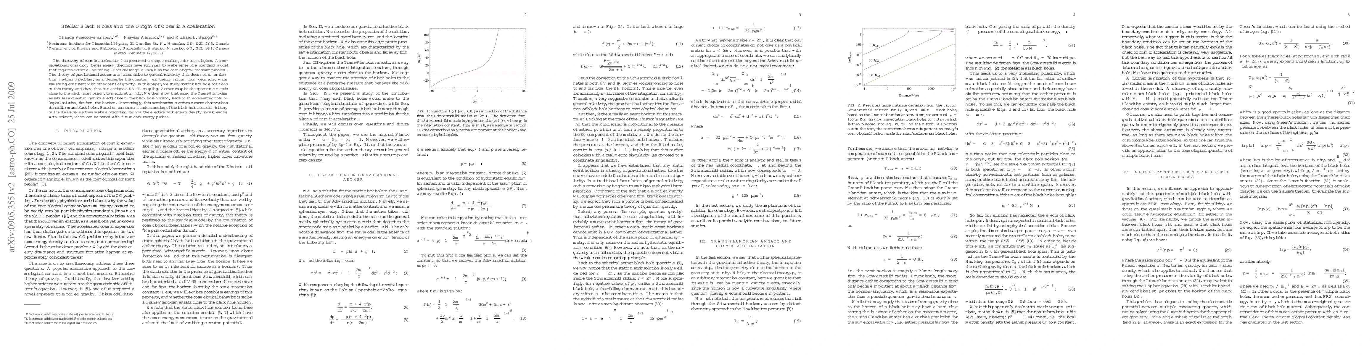 This paper explores gravitational aether theory as an alternative to general relativity to address the cosmological constant problem. It demonstrates that this theory can generate cosmic acceleration through UV-IR coupling near stellar black holes, matching current observations and predicting an evolving effective dark energy density.