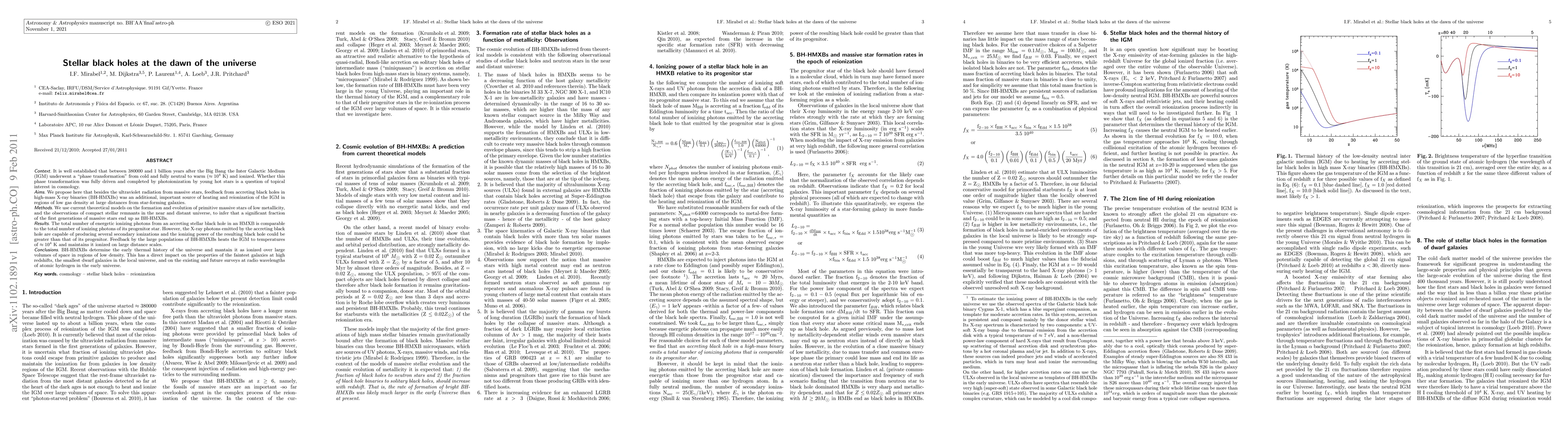 It is well established that between 380000 and 1 billion years after the Big Bang the Inter Galactic Medium (IGM) underwent a "phase transformation" from cold and fully neutral to warm (~10^4 K) and ionized. Whether this phase transformation was fully driven and completed by photoionization by young hot stars is a question of topical interest in cosmology. AIMS. We propose here that besides the ultraviolet radiation from massive stars, feedback from accreting black holes in high-mass X-ray binaries (BH-HMXBs) was an additional, important source of heating and reionization of the IGM in regions of low gas density at large distances from star-forming galaxies. METHODS. We use current theoretical models on the formation and evolution of primitive massive stars of low metallicity, and the observations of compact stellar remnants in the near and distant universe, to infer that a significant fraction of the first generations of massive stars end up as BH-HMXBs. The total number of energetic ionizing photons from an accreting stellar black hole in an HMXB is comparable to the total number of ionizing photons of its progenitor star. However, the X-ray photons emitted by the accreting black hole are capable of producing several secondary ionizations and the ionizing power of the resulting black hole could be greater than that of its progenitor. Feedback by the large populations of BH-HMXBs heats the IGM to temperatures of ~10^4 K and maintains it ionized on large distance scales. BH-HMXBs determine the early thermal history of the universe and mantain it as ionized over large volumes of space in regions of low density. This has a direct impact on the properties of the faintest galaxies at high redshifts, the smallest dwarf galaxies in the local universe, and on the existing and future surveys at radio wavelengths of atomic hydrogen in the early universe.