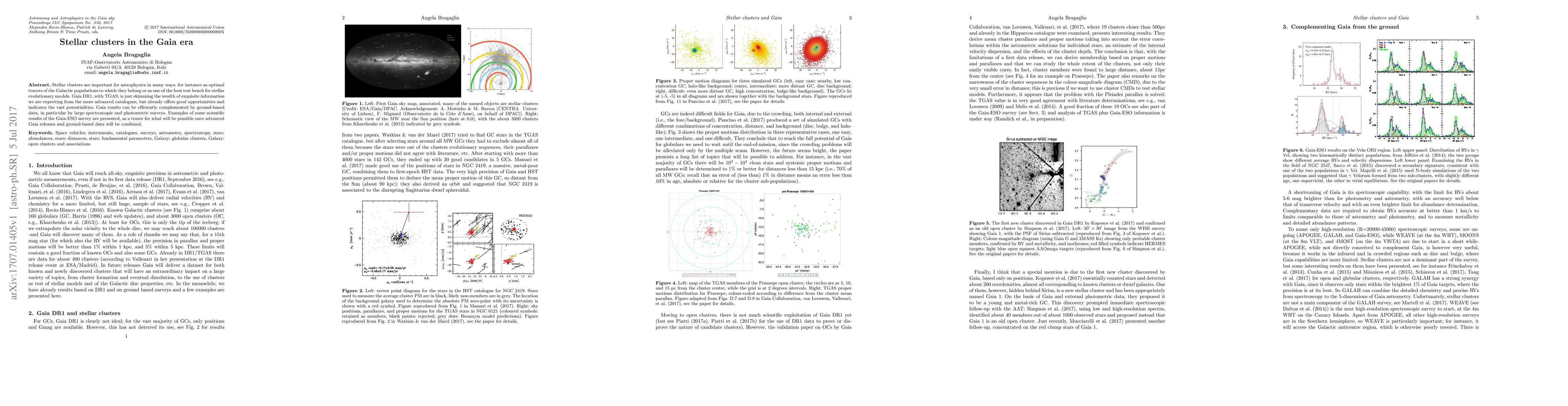 Stellar clusters are important for astrophysics in many ways, for instance as optimal tracers of the Galactic populations to which they belong or as one of the best test bench for stellar evolutionary models. Gaia DR1, with TGAS, is just skimming the wealth of exquisite information we are expecting from the more advanced catalogues, but already offers good opportunities and indicates the vast potentialities. Gaia results can be efficiently complemented by ground-based data, in particular by large spectroscopic and photometric surveys. Examples of some scientific results of the Gaia-ESO survey are presented, as a teaser for what will be possible once advanced Gaia releases and ground-based data will be combined.