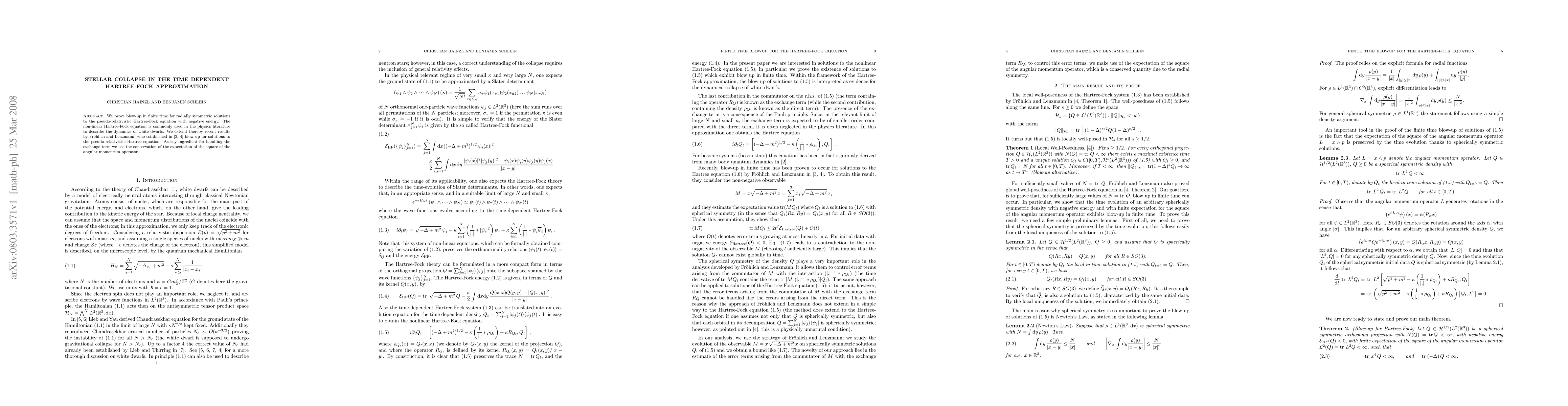 We prove blow-up in finite time for radially symmetric solutions to the pseudo-relativistic Hartree-Fock equation with negative energy. The non-linear Hartree-Fock equation is commonly used in the physics literature to describe the dynamics of white dwarfs. We extend thereby recent results by Fr\"ohlich and Lenzmann, who established in \cite{FL1,FL2} blow-up for solutions to the pseudo-relativistic Hartree equation. As key ingredient for handling the exchange term we use the conservation of the expectation of the square of the angular momentum operator.