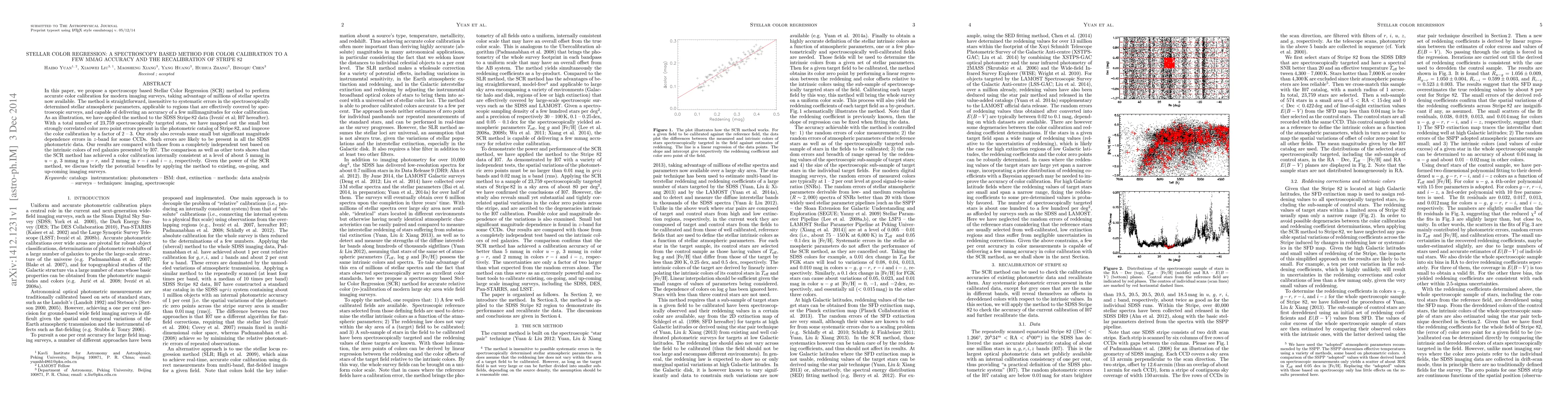 In this paper, we propose a spectroscopy based Stellar Color Regression (SCR) method to perform accurate color calibration for modern imaging surveys, taking advantage of millions of stellar spectra now available. The method is straightforward, insensitive to systematic errors in the spectroscopically determined stellar atmospheric parameters, applicable to regions that are effectively covered by spectroscopic surveys, and capable of delivering an accuracy of a few millimagnitudes for color calibration. As an illustration, we have applied the method to the SDSS Stripe 82 data (Ivezic et al; I07 hereafter). With a total number of 23,759 spectroscopically targeted stars, we have mapped out the small but strongly correlated color zero point errors present in the photometric catalog of Stripe 82, and improve the color calibration by a factor of 2 -- 3. Our study also reveals some small but significant magnitude dependence errors in z-band for some CCDs. Such errors are likely to be present in all the SDSS photometric data. Our results are compared with those from a completely independent test based on the intrinsic colors of red galaxies presented by I07. The comparison as well as other tests shows that the SCR method has achieved a color calibration internally consistent at a level of about 5 mmag in u-g, 3 mmag in g-r, and 2 mmag in r-i and i-z, respectively. Given the power of the SCR method, we discuss briefly the potential benefits by applying the method to existing, on-going, and up-coming imaging surveys.