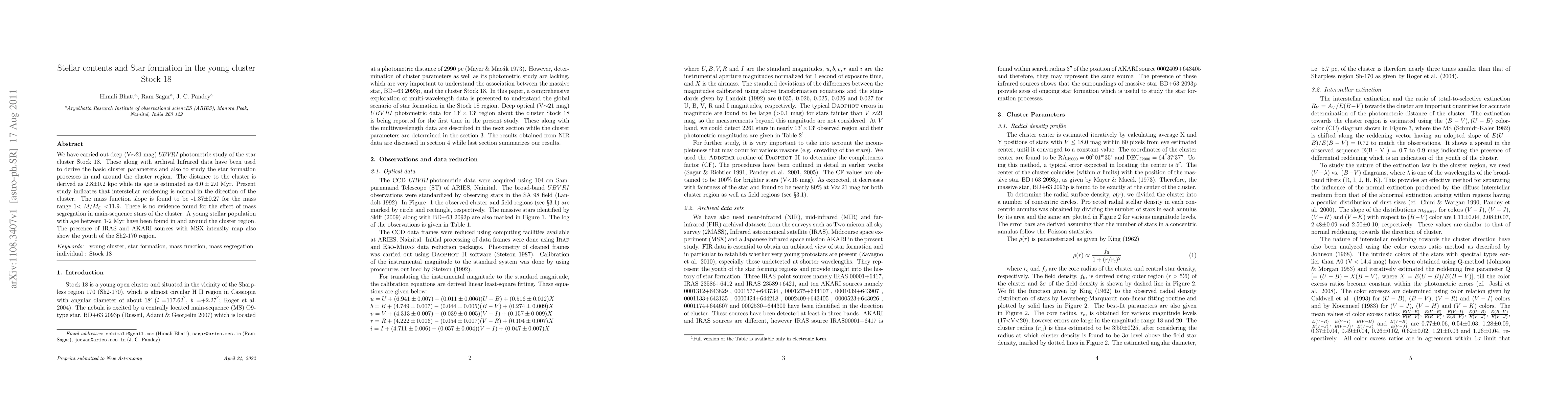 cluster Stock 18. These along with archival Infrared data have been used to