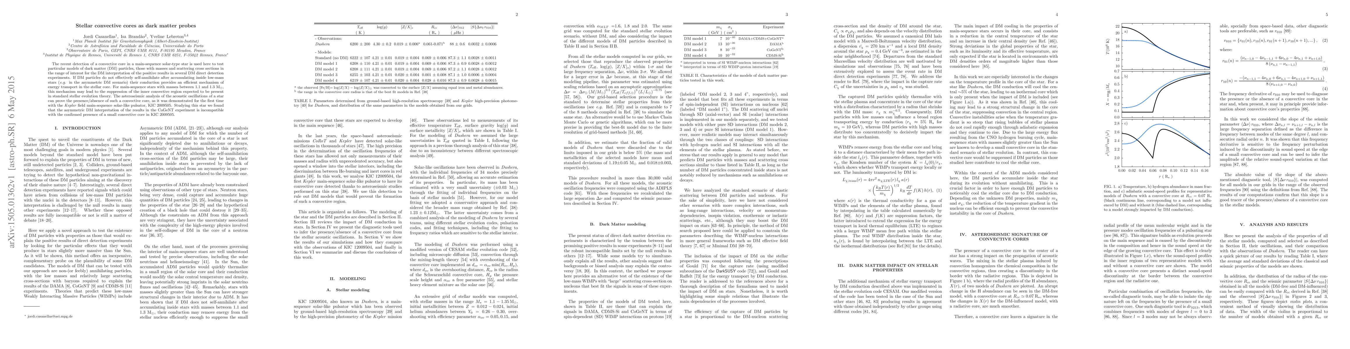 This paper uses the detection of a convective core in a solar-type star to test dark matter models, finding that asymmetric dark matter interpretations conflict with the observed presence of a small convective core in the star KIC 2009505, as revealed by asteroseismic analysis.