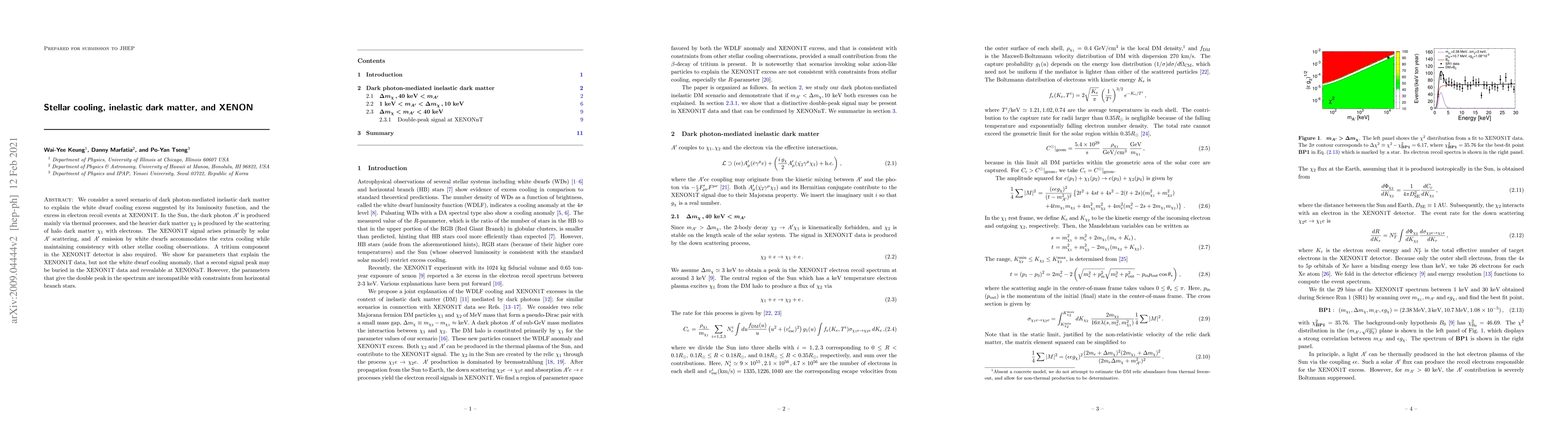 We consider a novel scenario of dark photon-mediated inelastic dark matter to explain the white dwarf cooling excess suggested by its luminosity function, and the excess in electron recoil events at XENON1T. In the Sun, the dark photon $A'$ is produced mainly via thermal processes, and the heavier dark matter $\chi_2$ is produced by the scattering of halo dark matter $\chi_1$ with electrons. The XENON1T signal arises primarily by solar $A'$ scattering, and $A'$ emission by white dwarfs accommodates the extra cooling while maintaining consistency with other stellar cooling observations. A tritium component in the XENON1T detector is also required. We show for parameters that explain the XENON1T data, but not the white dwarf cooling anomaly, that a second signal peak may be buried in the XENON1T data and revealable at XENONnT. However, the parameters that give the double peak in the spectrum are incompatible with constraints from horizontal branch stars.