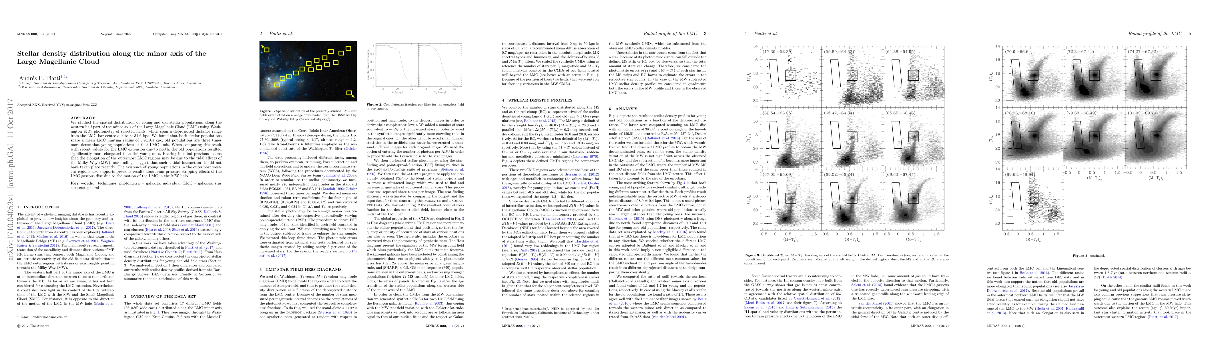 We studied the spatial distribution of young and old stellar populations along the western half part of the minor axis of the Large Magellanic Cloud (LMC) using Washington MT1 photometry of selected fields, which span a deprojected distance range from the LMC bar centre out to ~ 31.6 kpc. We found that both stellar populations share a mean LMC limiting radius of 8.9+-0.4 kpc; old populations are three times more dense that young populations at that LMC limit. When comparing this result with recent values for the LMC extension due to north, the old populations resulted significantly more elongated than the young ones. Bearing in mind previous claims that the elongation of the outermost LMC regions may be due to the tidal effects of the Milky Way (MW), our findings suggest that such a tidal interaction should not have taken place recently. The existence of young populations in the outermost western regions also supports previous results about ram pressure stripping effects of the LMC gaseous disc due to the motion of the LMC in the MW halo.