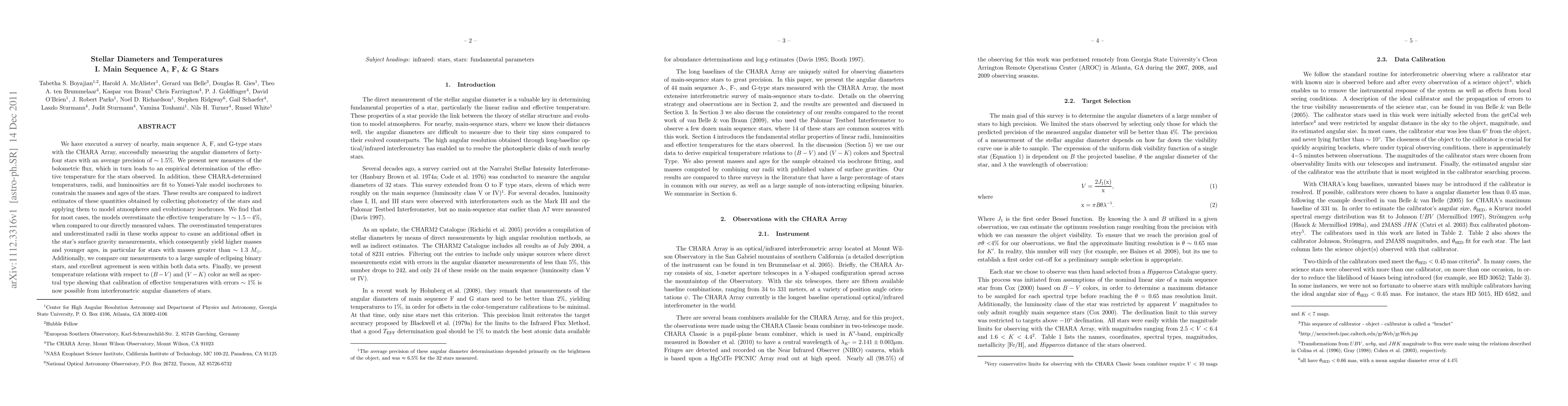 We have executed a survey of nearby, main sequence A, F, and G-type stars with the CHARA Array, successfully measuring the angular diameters of fortyfour stars with an average precision of ~ 1.5%. We present new measures of the bolometric flux, which in turn leads to an empirical determination of the effective temperature for the stars observed. In addition, these CHARA-determined temperatures, radii, and luminosities are fit to Yonsei-Yale model isochrones to constrain the masses and ages of the stars. These results are compared to indirect estimates of these quantities obtained by collecting photometry of the stars and applying them to model atmospheres and evolutionary isochrones. We find that for most cases, the models overestimate the effective temperature by ~ 1.5-4%, when compared to our directly measured values. The overestimated temperatures and underestimated radii in these works appear to cause an additional offset in the star's surface gravity measurements, which consequently yield higher masses and younger ages, in particular for stars with masses greater than ~1.3 Msun. Additionally, we compare our measurements to a large sample of eclipsing binary stars, and excellent agreement is seen within both data sets. Finally, we present temperature relations with respect to (B-V) and (V-K) color as well as spectral type showing that calibration of effective temperatures with errors ~ 1% is now possible from interferometric angular diameters of stars.