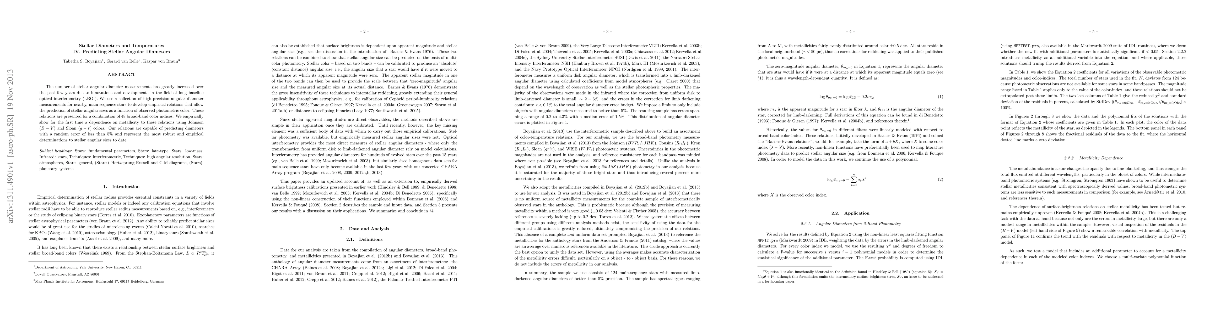 This paper develops empirical relations based on high-precision angular diameter measurements to predict stellar angular sizes using photometric color indices. It introduces a dependence on metallicity and provides the most accurate predictions to date with a random error of less than 5%.