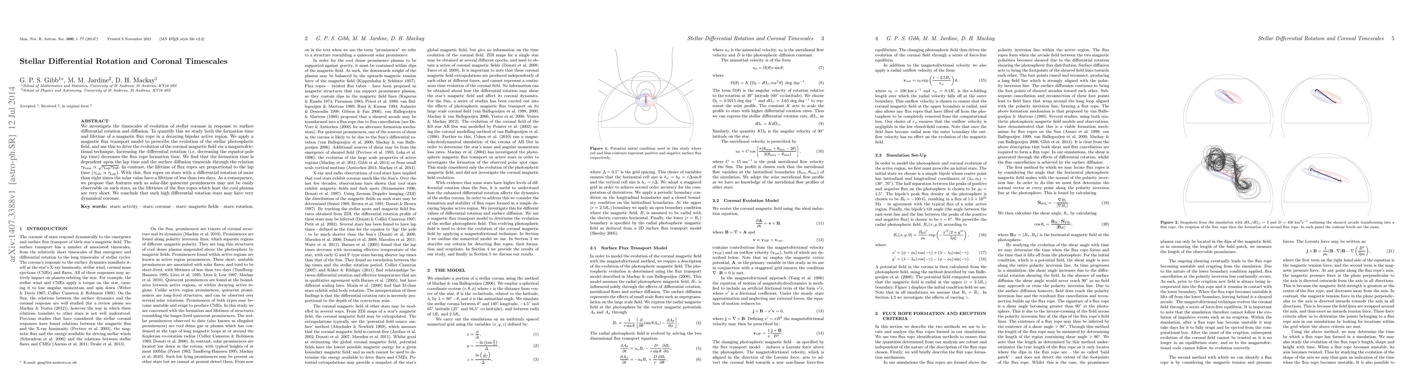 We investigate the timescales of evolution of stellar coronae in response to surface differential rotation and diffusion. To quantify this we study both the formation time and lifetime of a magnetic flux rope in a decaying bipolar active region. We apply a magnetic flux transport model to prescribe the evolution of the stellar photospheric field, and use this to drive the evolution of the coronal magnetic field via a magnetofrictional technique. Increasing the differential rotation (i.e. decreasing the equator-pole lap time) decreases the flux rope formation time. We find that the formation time is dependent upon the geometric mean of the lap time and the surface diffusion timescale. In contrast, the lifetime of flux ropes are proportional to the lap time. With this, flux ropes on stars with a differential rotation of more than eight times the solar value have a lifetime of less than two days. As a consequence, we propose that features such as solar-like quiescent prominences may not be easily observable on such stars, as the lifetimes of the flux ropes which host the cool plasma are very short. We conclude that such high differential rotation stars may have very dynamical coronae.