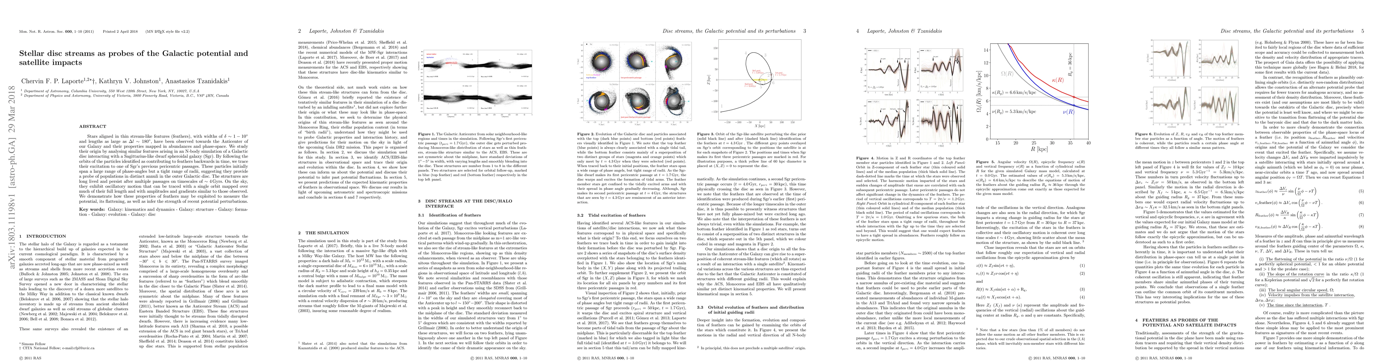 Stars aligned in thin stream-like features (feathers), with widths of $\delta\sim1-10^{\circ}$ and lengths as large as $\Delta l\sim180^{\circ}$, have been observed towards the Anticenter of our Galaxy and their properties mapped in abundances and phase-space. We study their origin by analysing similar features arising in an N-body simulation of a Galactic disc interacting with a Sagittarius-like dwarf spheroidal galaxy (Sgr). By following the orbits of the particles identified as contributing to feathers backwards in time, we trace their excitation to one of Sgr's previous pericentric passages. These particles initially span a large range of phase-angles but a tight range of radii, suggesting they provide a probe of populations in distinct annuli in the outer Galactic disc. The structures are long lived and persist after multiple passages on timescales of $\sim4 \,\rm{Gyrs}$. On the sky, they exhibit oscillatory motion that can be traced with a single orbit mapped over much of their full length and with amplitudes and gradients similar to those observed. We demonstrate how these properties of feathers may be exploited to measure the potential, its flattening, as well as infer the strength of recent potential perturbations.