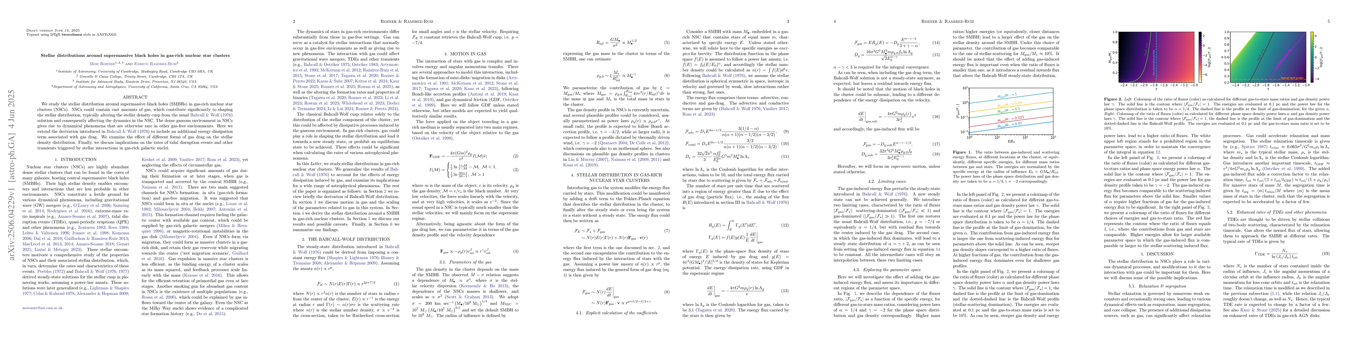 This research paper studies how supermassive black holes influence the distribution of stars in dense galactic nuclei with abundant gas, which can trigger unique stellar interactions.