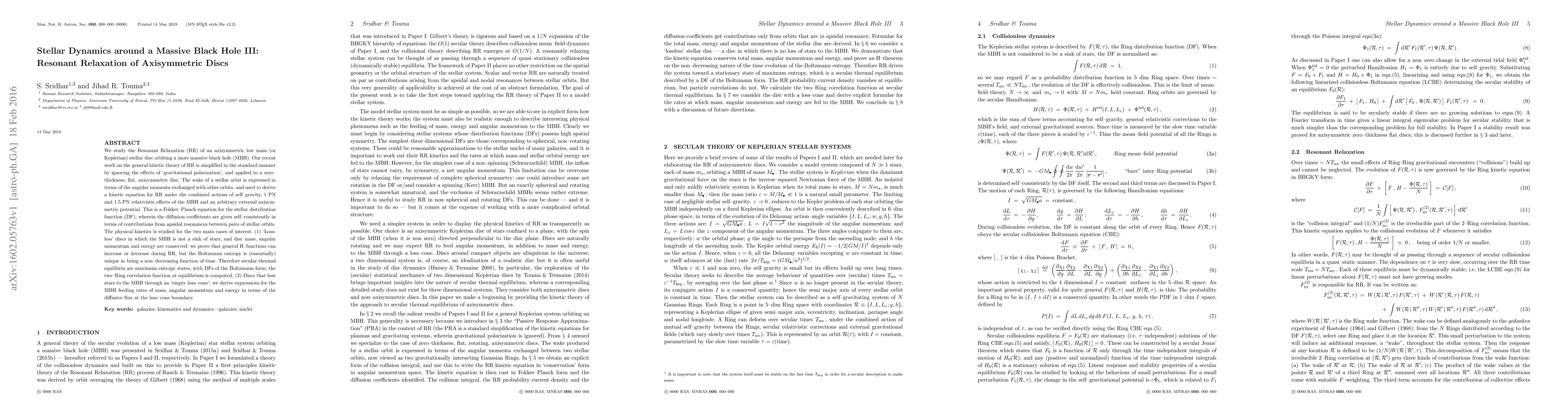 Research studies how stellar discs orbiting massive black holes relax through resonant interactions, finding that Boltzmann entropy is always non-decreasing and leads to maximum thermal equilibrium states.