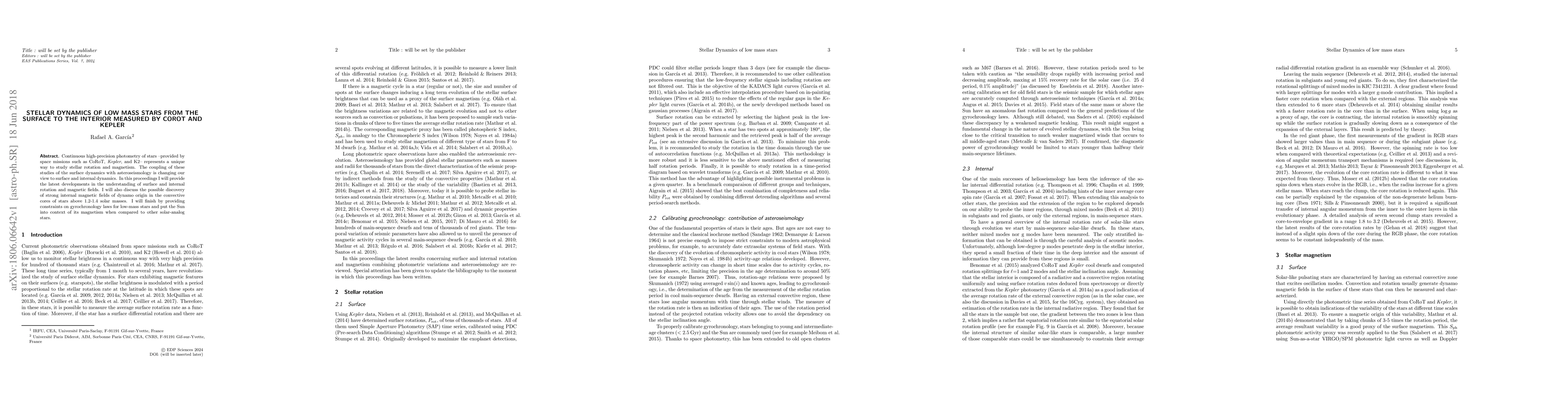 Continuous high-precision photometry of stars, provided by space missions such as CoRoT, Kepler, and K2, represents a unique way to study stellar rotation and magnetism. The coupling of these studies of the surface dynamics with asteroseismology is changing our view to surface and internal dynamics. In this proceedings I will provide the latest developments in the understanding of surface and internal rotation and magnetic fields. I will also discuss the possible discovery of strong internal magnetic fields of dynamo origin in the convective cores of stars above 1.2-1.4 solar masses. I will finish by providing constraints on gyrochronology laws for low-mass stars and put the Sun into context of its magnetism when compared to other solar-analog stars.