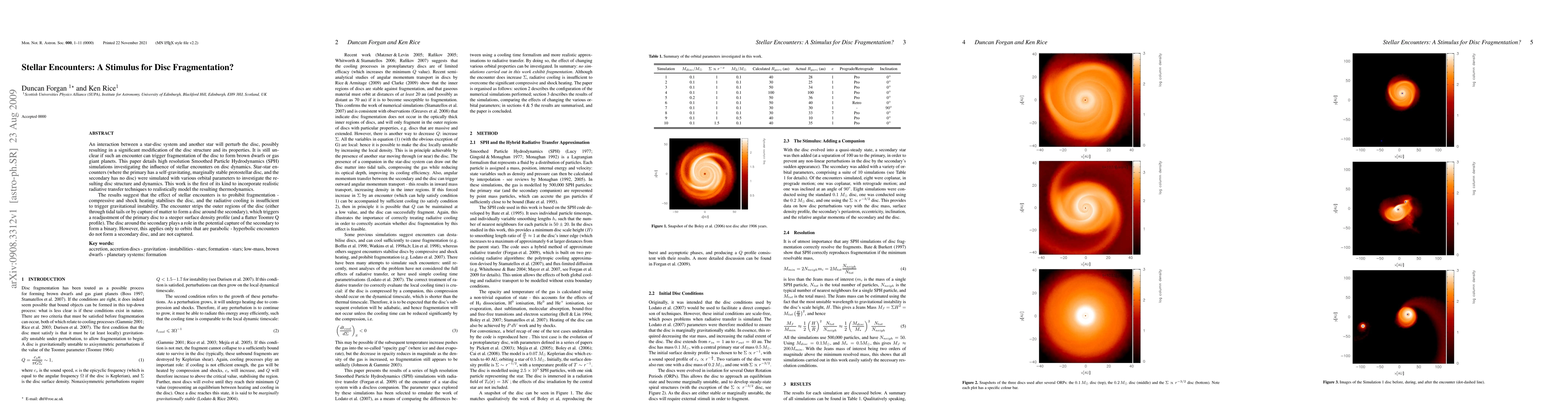 An interaction between a star-disc system and another star will perturb the disc, possibly resulting in a significant modification of the disc structure and its properties. It is still unclear if such an encounter can trigger fragmentation of the disc to form brown dwarfs or gas giant planets. This paper details high resolution Smoothed Particle Hydrodynamics (SPH) simulations investigating the influence of stellar encounters on disc dynamics. Star-star encounters (where the primary has a self-gravitating, marginally stable protostellar disc, and the secondary has no disc) were simulated with various orbital parameters to investigate the resulting disc structure and dynamics. This work is the first of its kind to incorporate realistic radiative transfer techniques to realistically model the resulting thermodynamics. The results suggest that the effect of stellar encounters is to prohibit fragmentation - compressive and shock heating stabilises the disc, and the radiative cooling is insufficient to trigger gravitational instability. The encounter strips the outer regions of the disc (either through tidal tails or by capture of matter to form a disc around the secondary), which triggers a readjustment of the primary disc to a steeper surface density profile (and a flatter Toomre Q profile). The disc around the secondary plays a role in the potential capture of the secondary to form a binary. However, this applies only to orbits that are parabolic - hyperbolic encounters do not form a secondary disc, and are not captured.