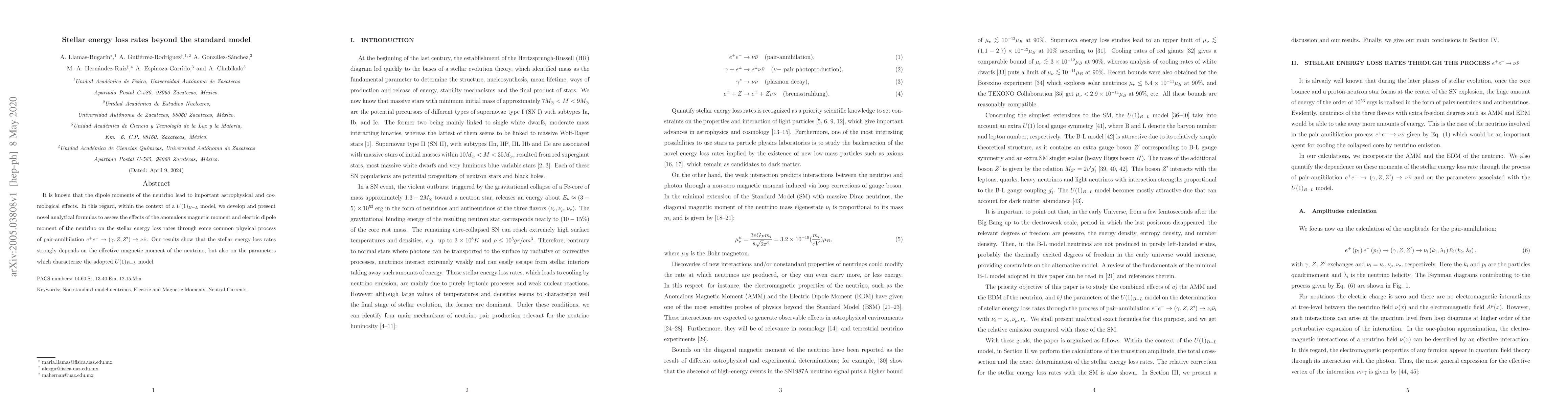 It is known that the dipole moments of the neutrino lead to important astrophysical and cosmological effects. In this regard, within the context of a $U(1)_{B-L}$ model, we develop and present novel analytical formulas to assess the effects of the anomalous magnetic moment and electric dipole moment of the neutrino on the stellar energy loss rates through some common physical process of pair-annihilation $e^+e^-\to(\gamma, Z, Z^{\prime})\to\nu\bar\nu$. Our results show that the stellar energy loss rates strongly depends on the effective magnetic moment of the neutrino, but also on the parameters which characterize the adopted $U(1)_{B-L}$ model.