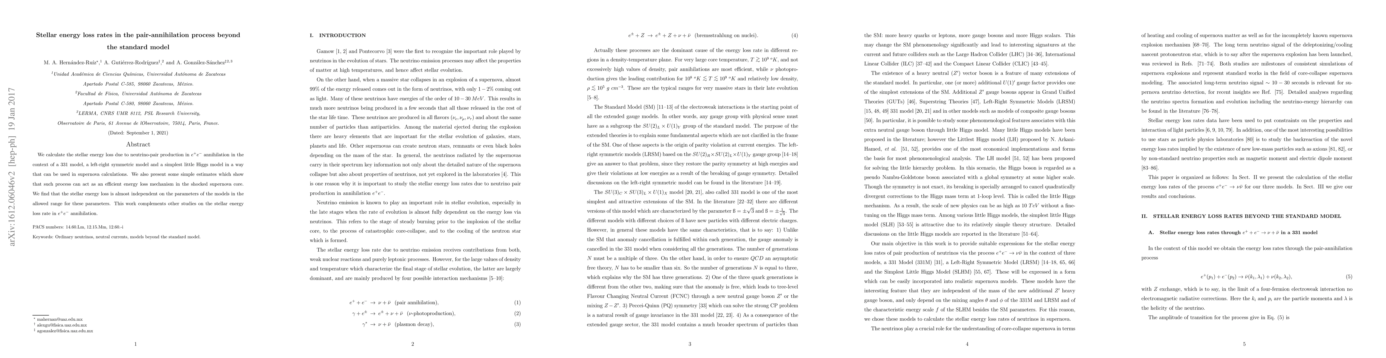 We calculate the stellar energy loss due to neutrino-pair production in $e^+e^-$ annihilation in the context of a 331 model, a left-right symmetric model and a simplest little Higgs model in a way that can be used in supernova calculations. We also present some simple estimates which show that such process can act as an efficient energy loss mechanism in the shocked supernova core. We find that the stellar energy loss is almost independent on the parameters of the models in the allowed range for these parameters. This work complements other studies on the stellar energy loss rate in $e^+e^-$ annihilation.