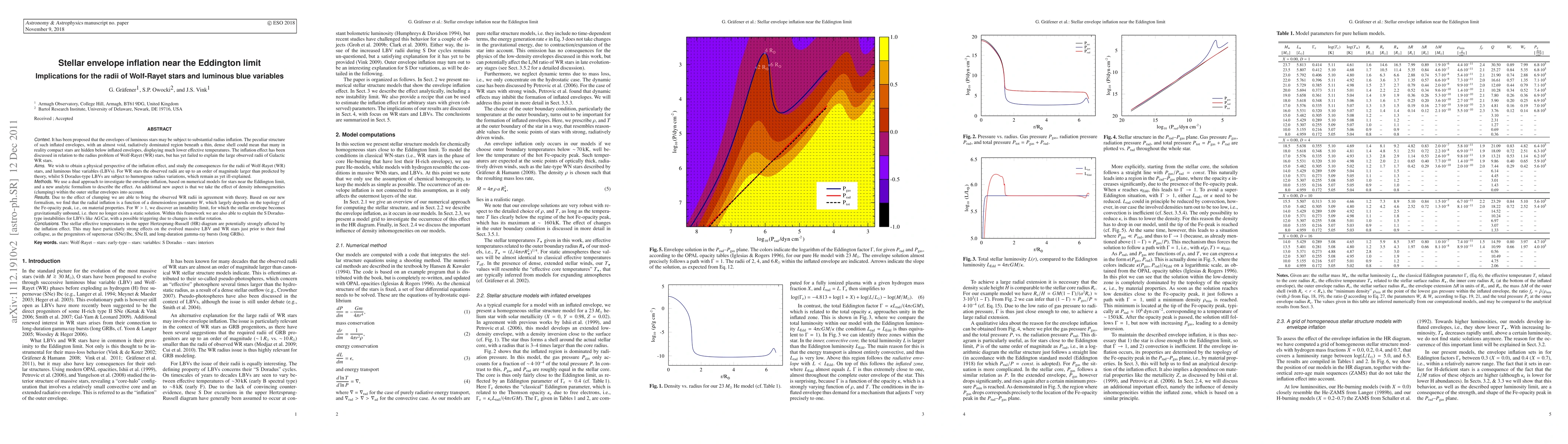 This paper investigates stellar envelope inflation near the Eddington limit, explaining the large observed radii of Wolf-Rayet stars and the massive radius variations in luminous blue variables. The study combines numerical models and a new analytic formalism, revealing that clumping in stellar envelopes can reconcile theoretical predictions with observations, and identifies an instability limit for envelope inflation.