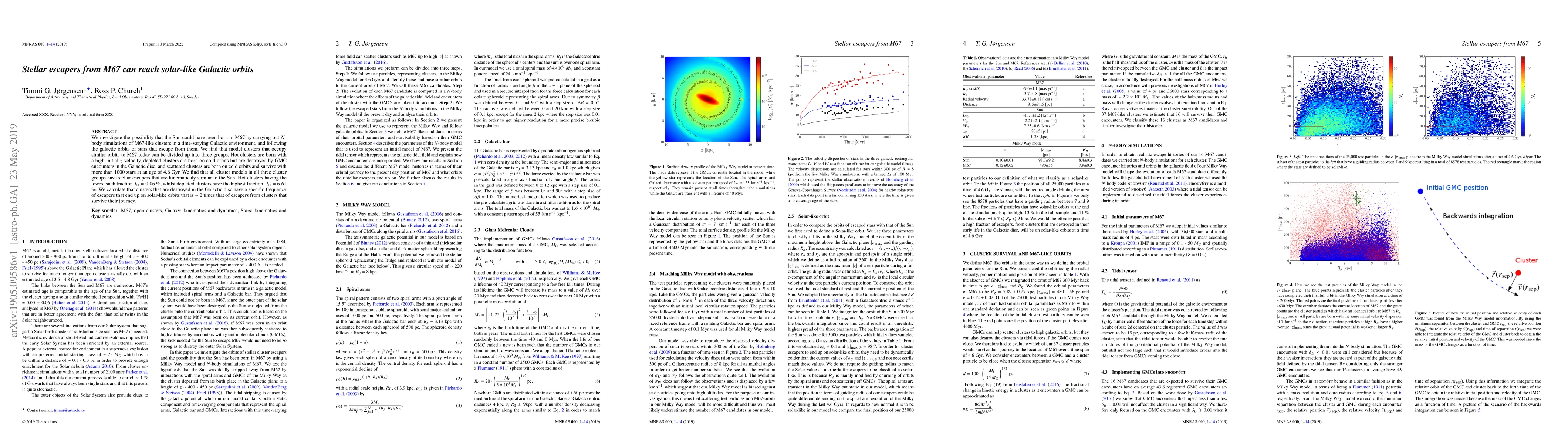 We investigate the possibility that the Sun could have been born in M67 by carrying out $N$-body simulations of M67-like clusters in a time-varying Galactic environment, and following the galactic orbits of stars that escape from them. We find that model clusters that occupy similar orbits to M67 today can be divided up into three groups. Hot clusters are born with a high initial $z$-velocity, depleted clusters are born on cold orbits but are destroyed by GMC encounters in the Galactic disc, and scattered clusters are born on cold orbits and survive with more than 1000 stars at an age of 4.6 Gyr. We find that all cluster models in all three cluster groups have stellar escapers that are kinematicaly similar to the Sun. Hot clusters having the lowest such fraction $f_{\odot} = 0.06$ %, whilst depleted clusters have the highest fraction, $f_{\odot} = 6.61$ %. We calculate that clusters that are destroyed in the Galactic disc have a specific frequency of escapers that end up on solar-like orbits that is $\sim$ 2 times that of escapers from clusters that survive their journey.
