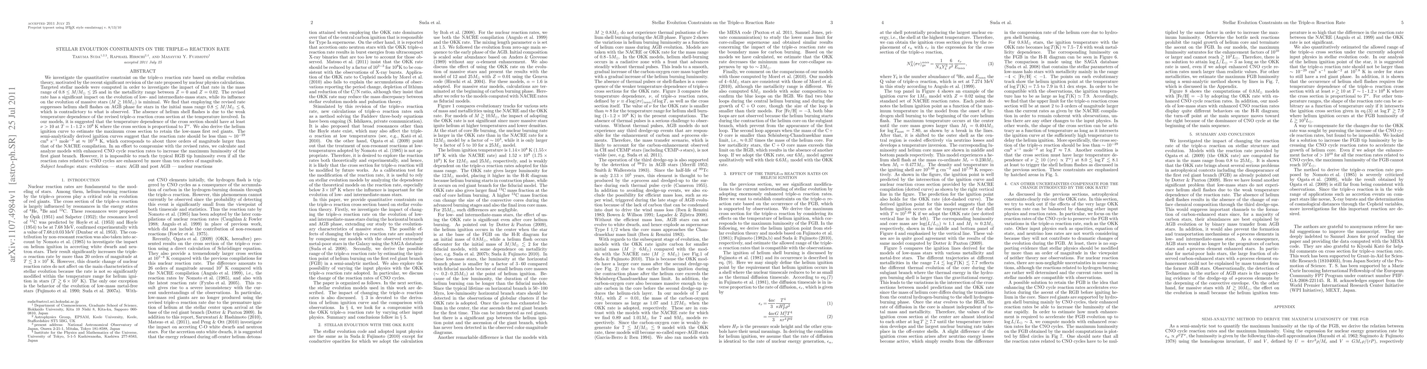 This paper explores the impact of a revised triple-alpha reaction rate on stellar evolution, finding that it suppresses helium shell flashes in low-mass stars contrary to observations. The study suggests a temperature dependence of the cross section should be at least nu > 10 to align with observed stellar evolution.