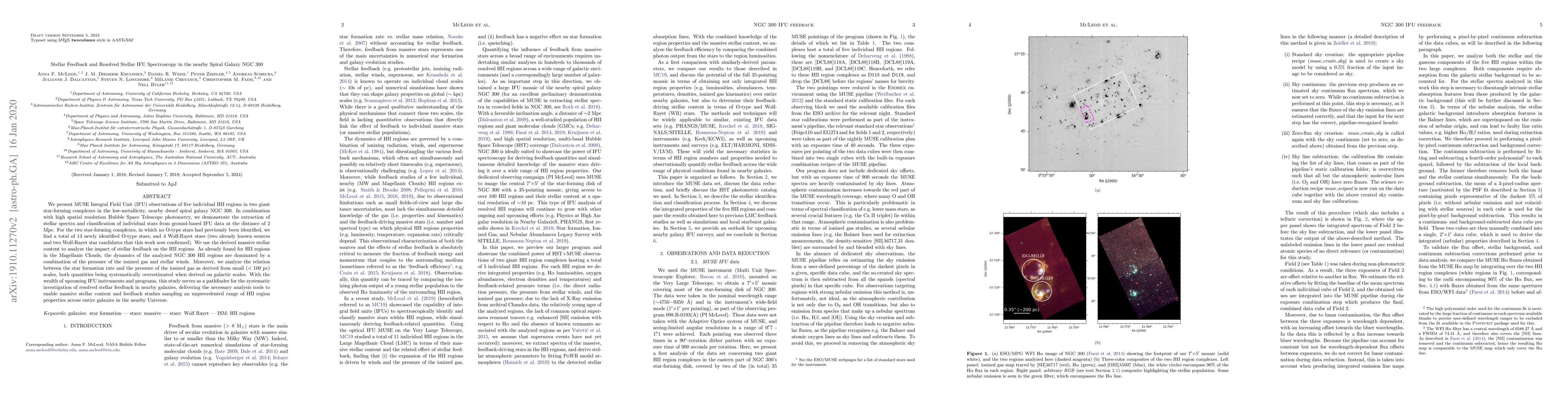 This paper utilizes MUSE IFU observations to identify O-type and Wolf-Rayet stars in NGC 300, revealing the impact of stellar feedback on HII regions. The study finds that stellar winds and ionized gas pressure dominate HII region dynamics, suggesting early evolutionary stages or multi-phase feedback bubbles.