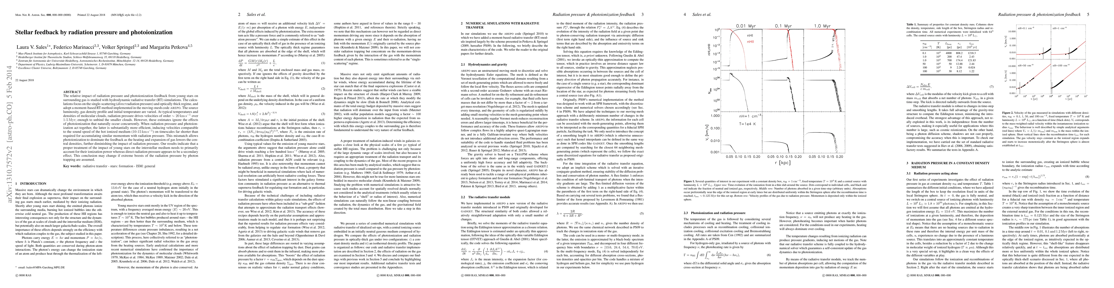 This paper investigates the influence of radiation pressure and photoionization from young stars on surrounding gas, finding that while radiation pressure drives gas at velocities of ~20 km/s, photoionization is significantly more effective, inducing velocities comparable to the sound speed of the hot ionized medium on much shorter timescales. Thus, photoionization dominates the feedback mechanism.