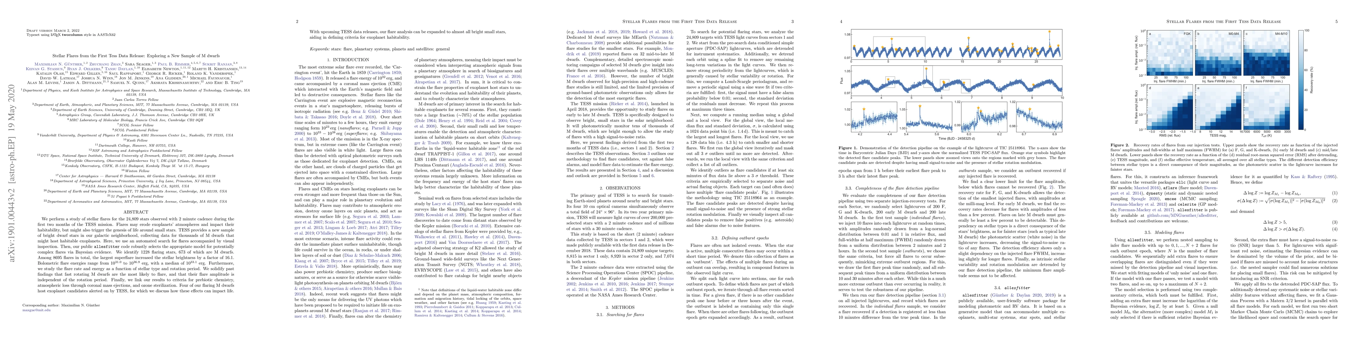 This study analyzes stellar flares from the first TESS data release, identifying 1228 flaring stars, including 673 M-dwarfs, with the largest superflare increasing brightness by a factor of 16.1. The research explores flare rates and energies, linking findings to exoplanet habitability and prebiotic chemistry.