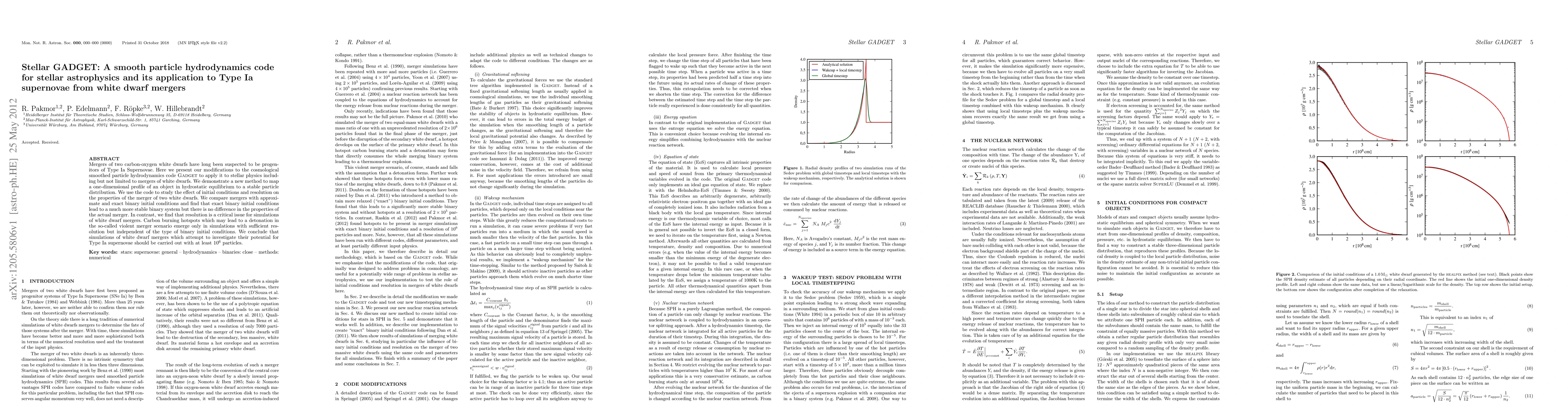 Mergers of two carbon-oxygen white dwarfs have long been suspected to be progenitors of Type Ia Supernovae. Here we present our modifications to the cosmological smoothed particle hydrodynamics code Gadget to apply it to stellar physics including but not limited to mergers of white dwarfs. We demonstrate a new method to map a one-dimensional profile of an object in hydrostatic equilibrium to a stable particle distribution. We use the code to study the effect of initial conditions and resolution on the properties of the merger of two white dwarfs. We compare mergers with approximate and exact binary initial conditions and find that exact binary initial conditions lead to a much more stable binary system but there is no difference in the properties of the actual merger. In contrast, we find that resolution is a critical issue for simulations of white dwarf mergers. Carbon burning hotspots which may lead to a detonation in the so-called violent merger scenario emerge only in simulations with sufficient resolution but independent of the type of binary initial conditions. We conclude that simulations of white dwarf mergers which attempt to investigate their potential for Type Ia supernovae should be carried out with at least 10^6 particles.